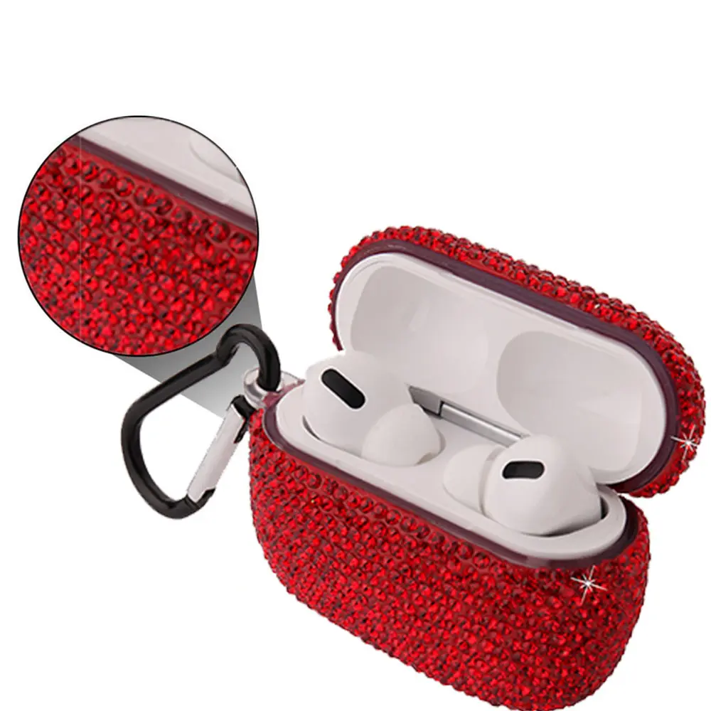 Comprar Funda de lujo con diamantes de imitación y purpurina para Airpods, funda protectora para Apple Airpods Pro 3, funda dura para PC con diamantes