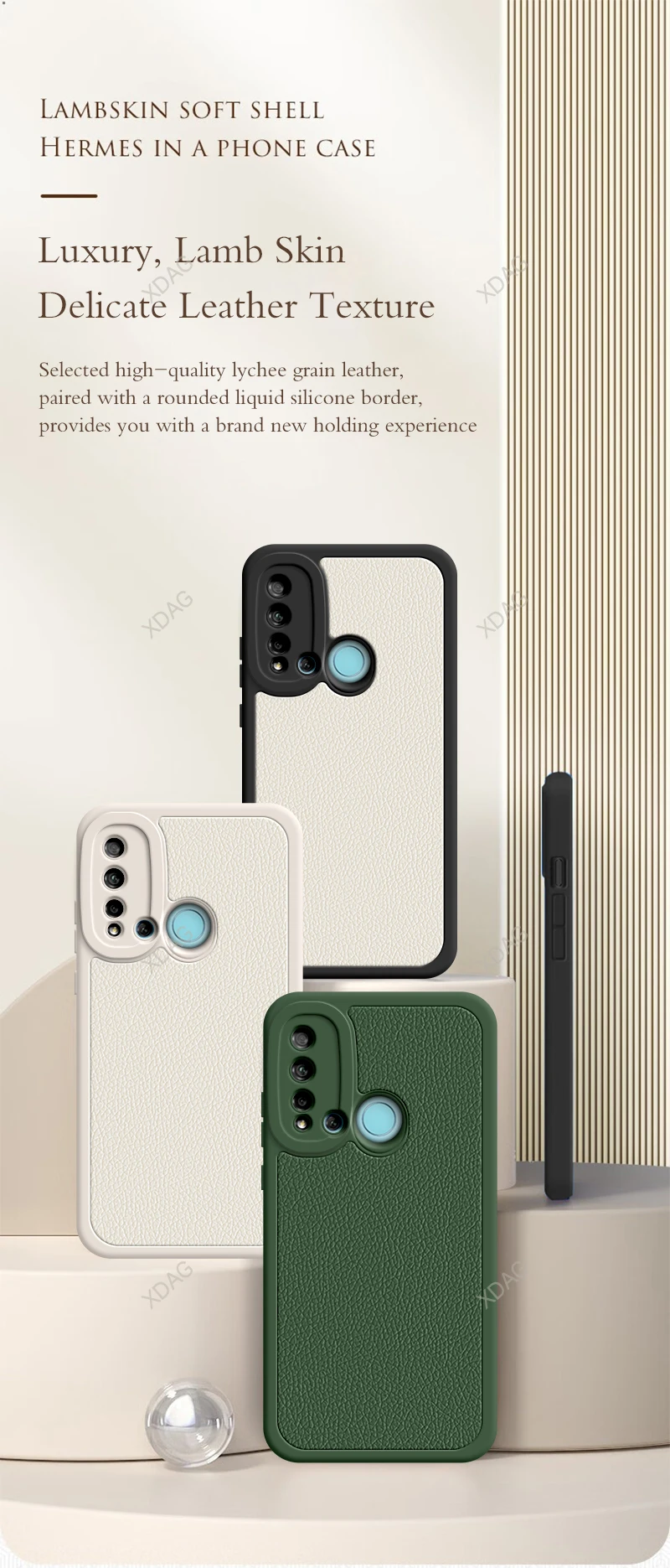Comprar Funda de lujo con diseño de lichi para Huawei P20 Lite P20Lite Pro 2019, Funda clásica con protección de lente, Funda suave de cuero de piel de cordero para teléfono