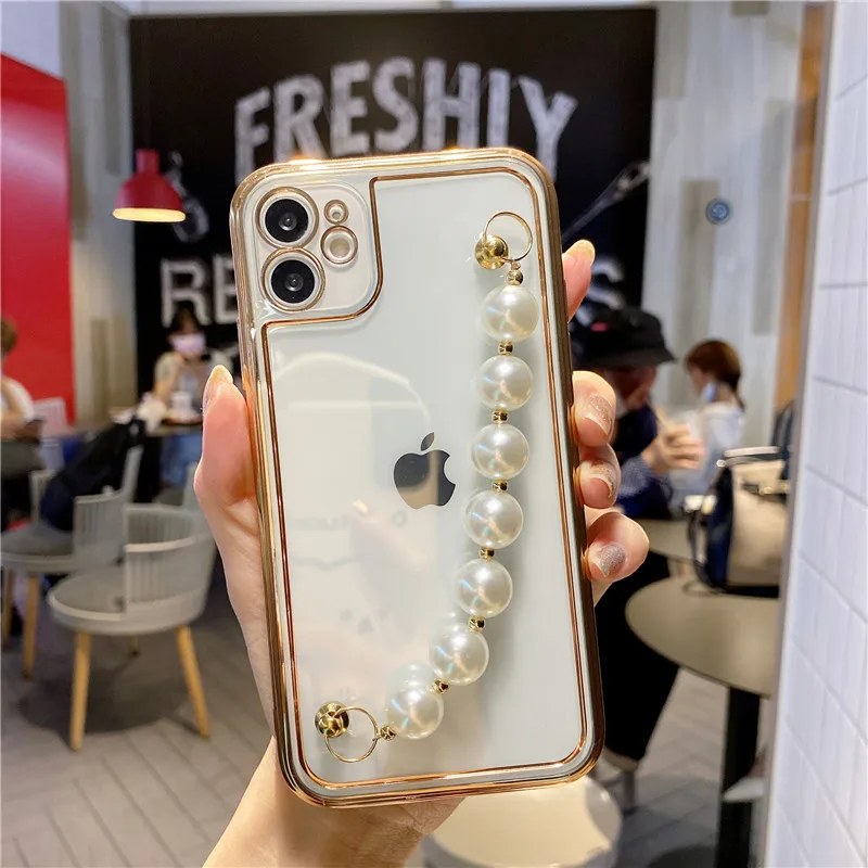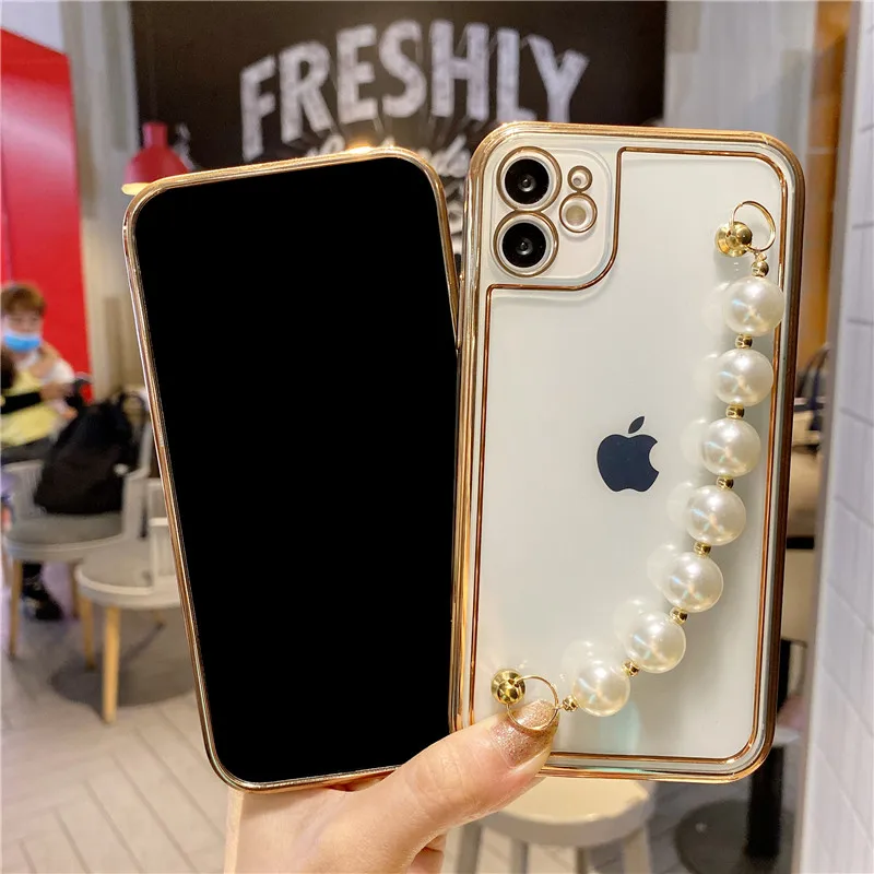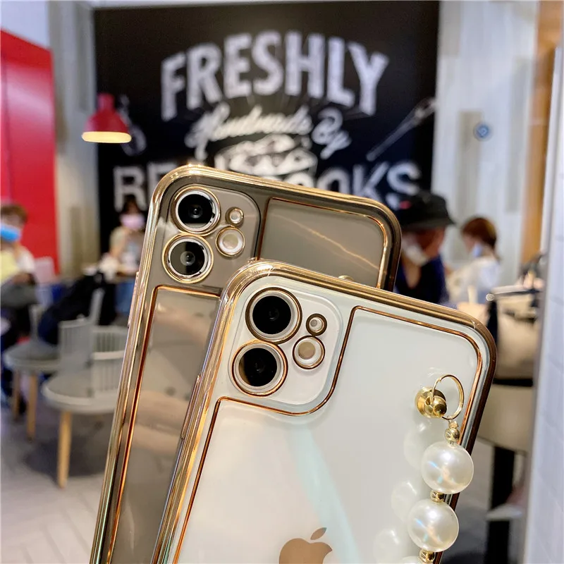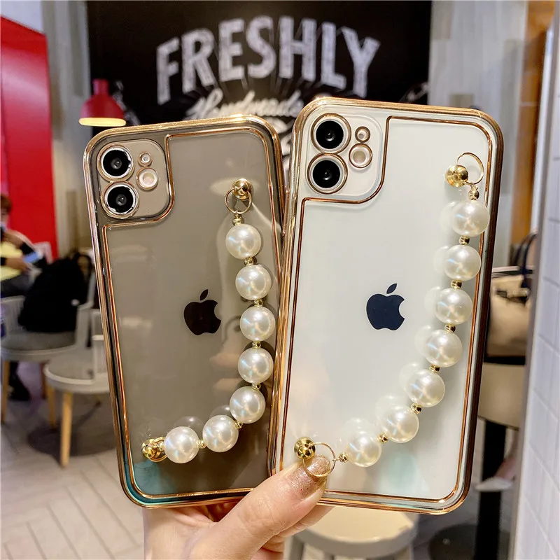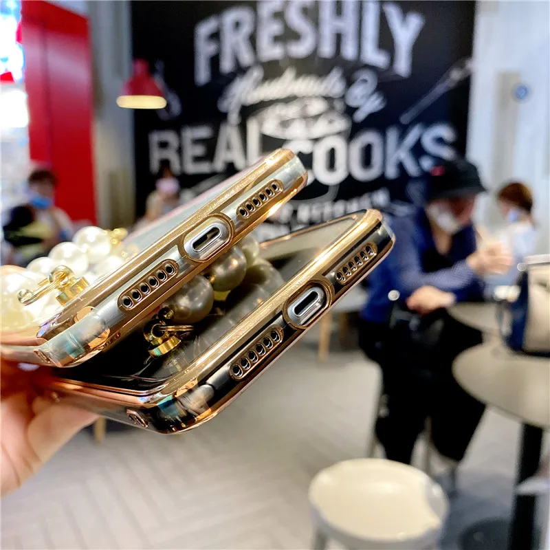 Comprar Funda de lujo enchapada de perlas para iPhone 11, 12 Pro Max, MiNi, XR, XS, X, 7, 8 plus, SE 2, funda protectora suave para cámara
