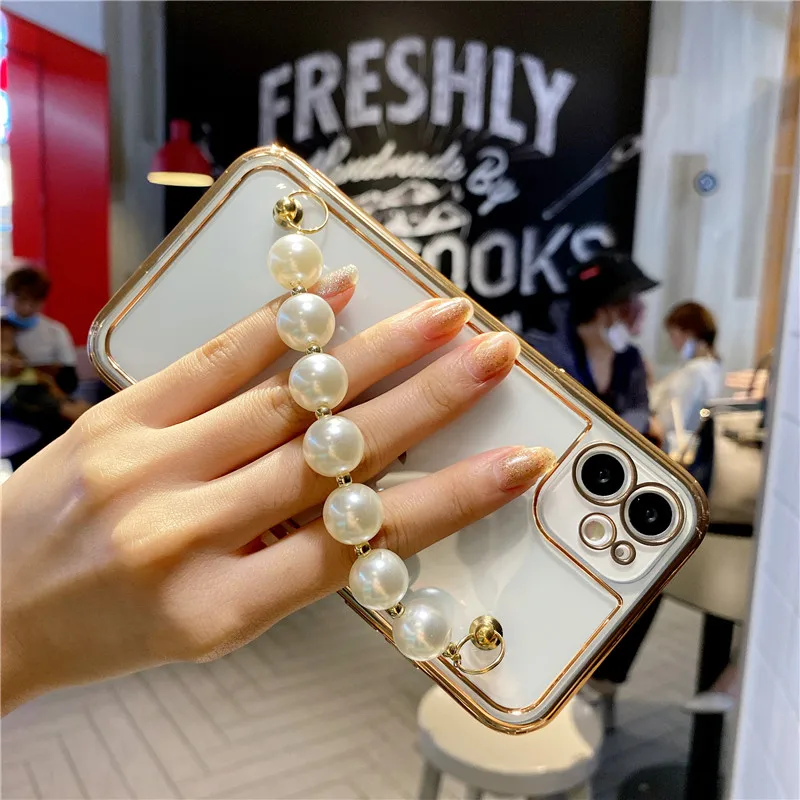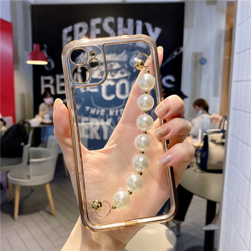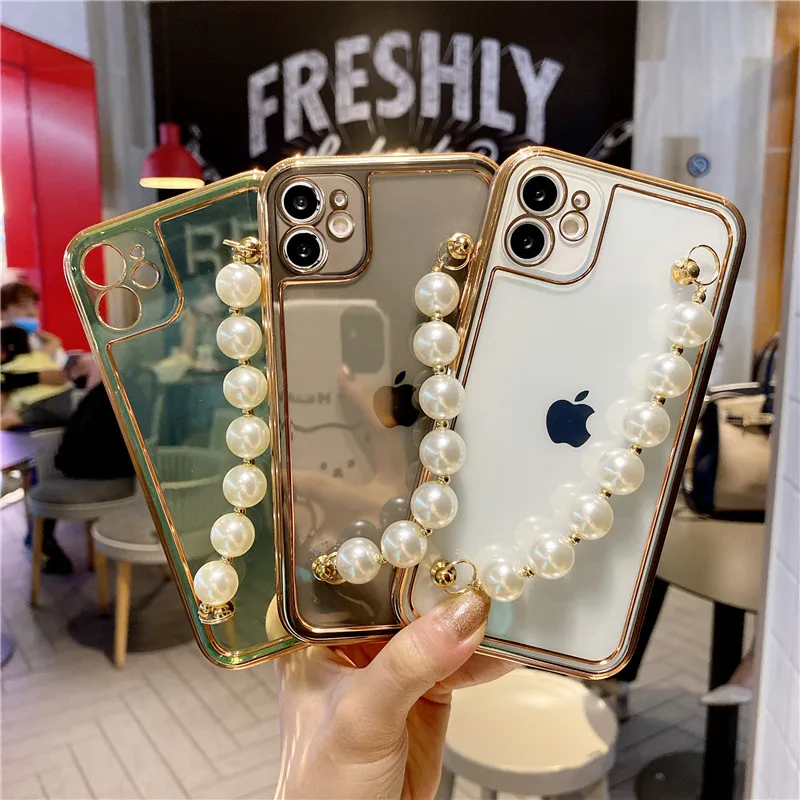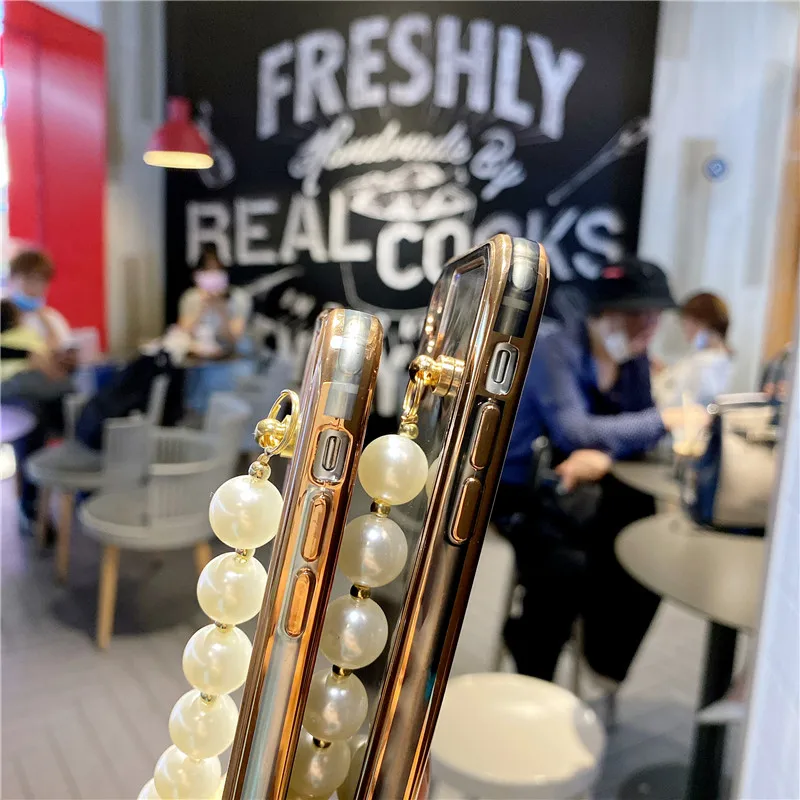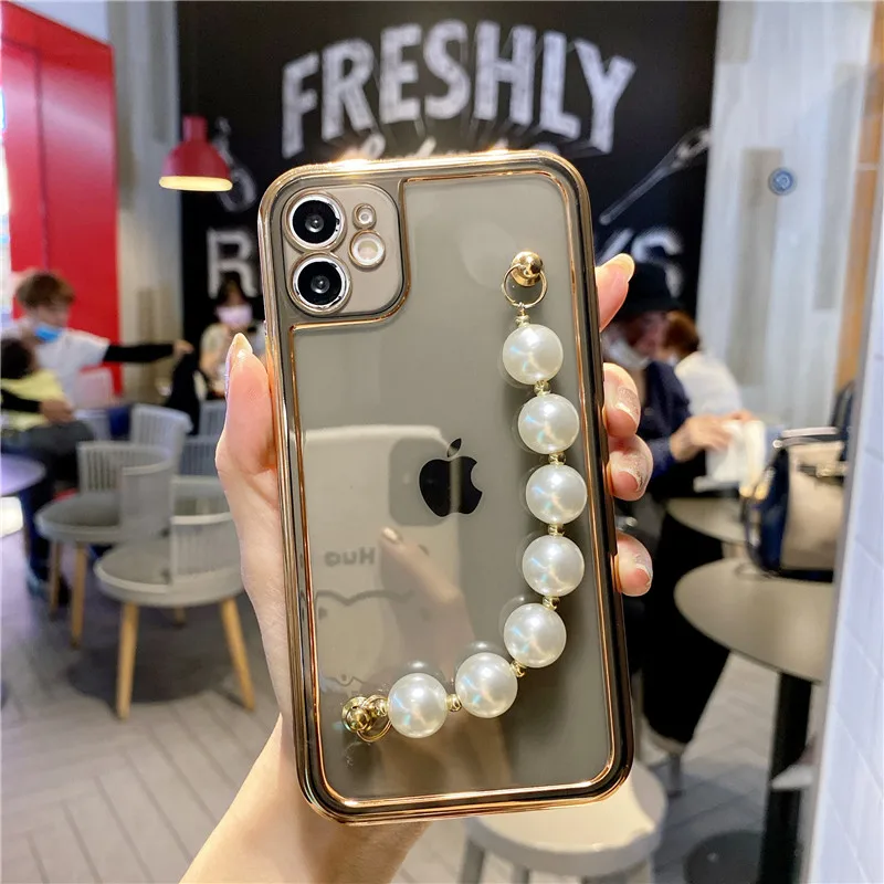 Comprar Funda de lujo enchapada de perlas para iPhone 11, 12 Pro Max, MiNi, XR, XS, X, 7, 8 plus, SE 2, funda protectora suave para cámara