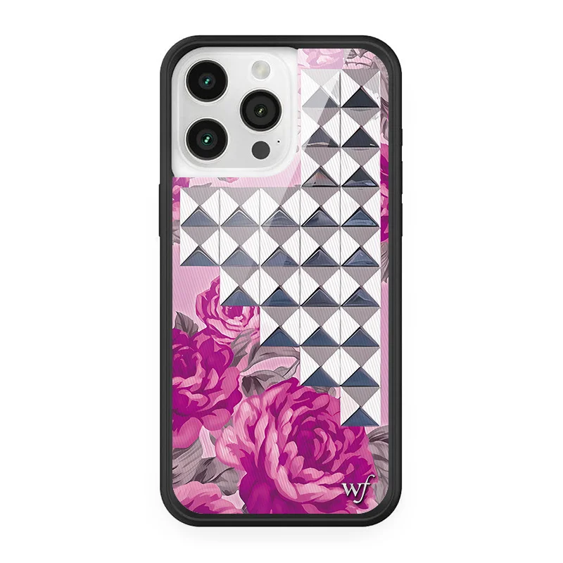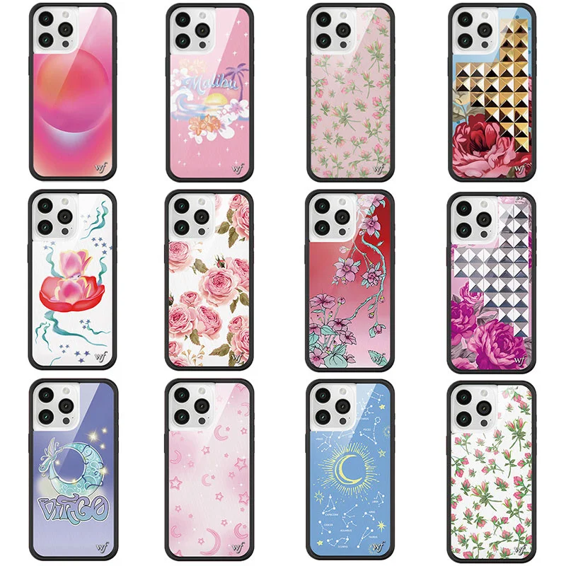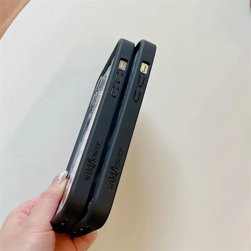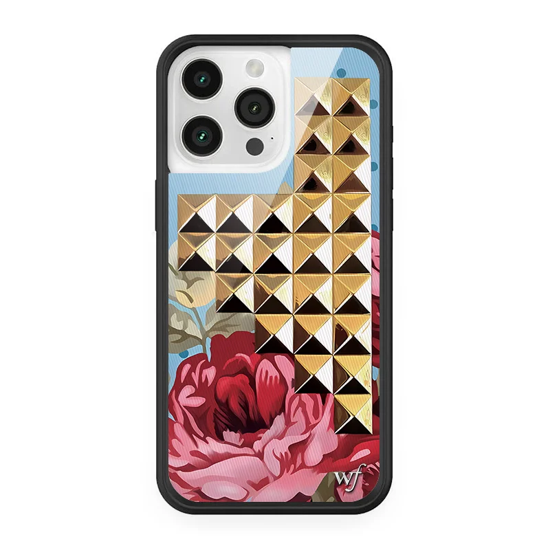 Comprar Funda de lujo con etiqueta de Metal para iPhone, carcasa con diseño de flor silvestre en 3D, Luna, arena, diamante, flor, WF, 13, 12, 14, 15, 16 Pro Max, WF