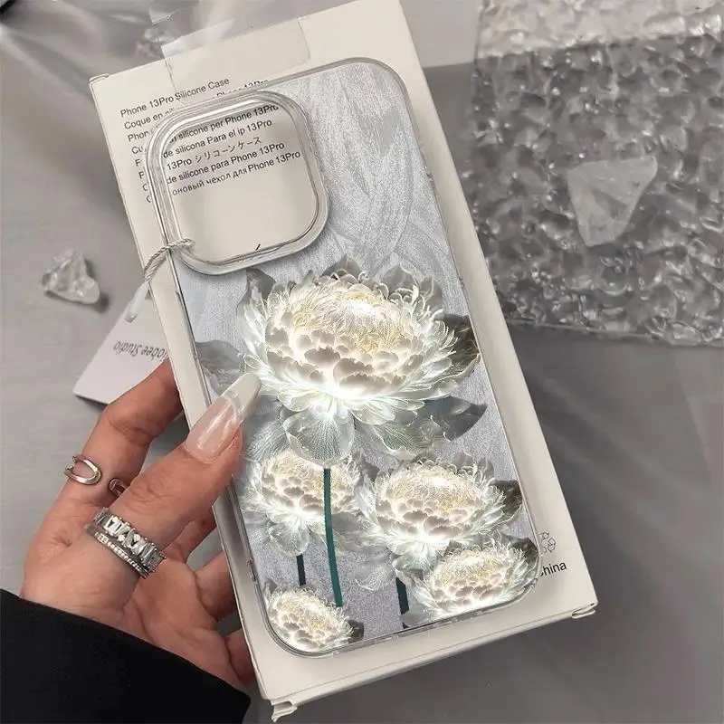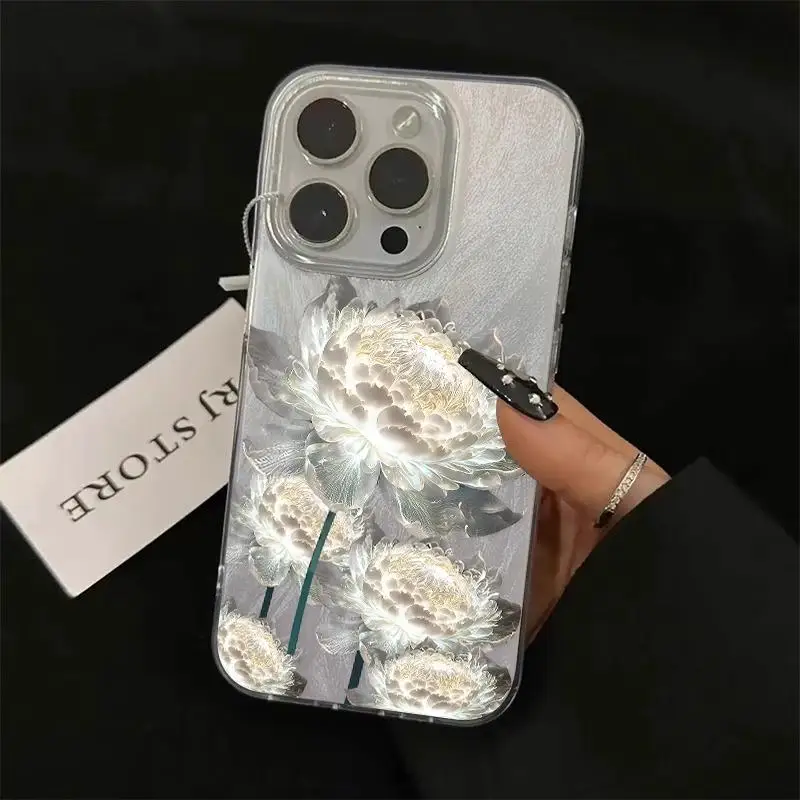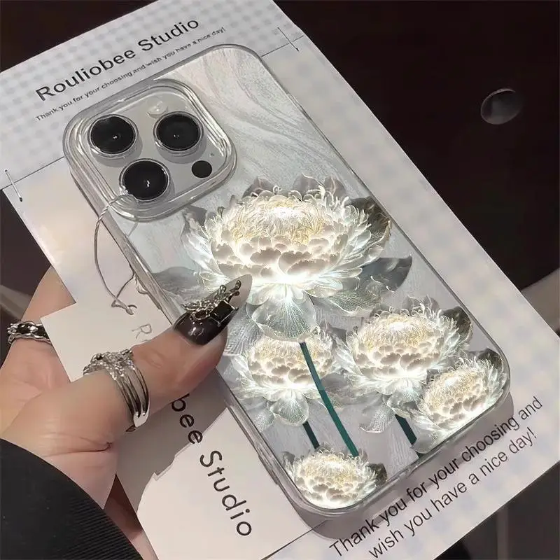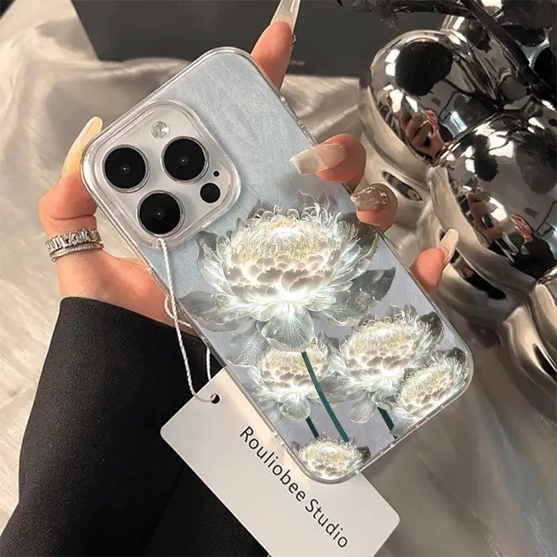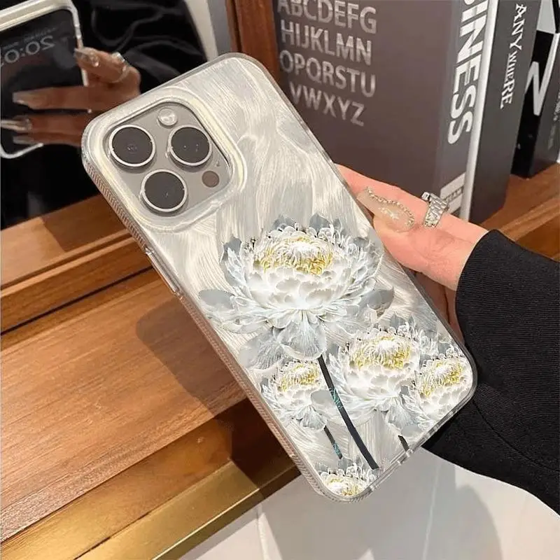 Comprar Funda de lujo con flor de loto para iPhone 16 Pro Max 15 14Pro13 12 Mini 11 Pro XS XR 7 8 Plus, carcasa protectora de pantalla a prueba de golpes