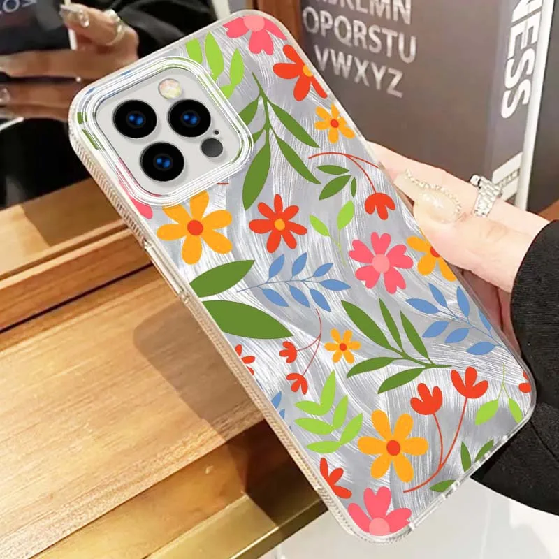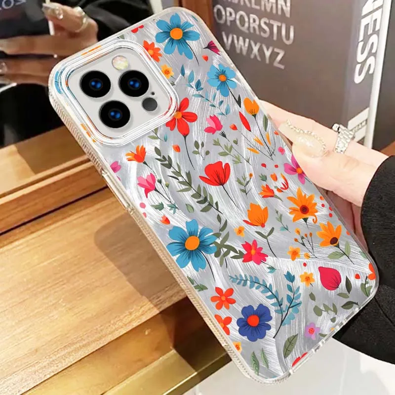 Comprar Funda de lujo con flores para Apple iPhone 16 16E 15 14 13 12 11 8 XS X Pro Max, funda de teléfono con textura de plumas