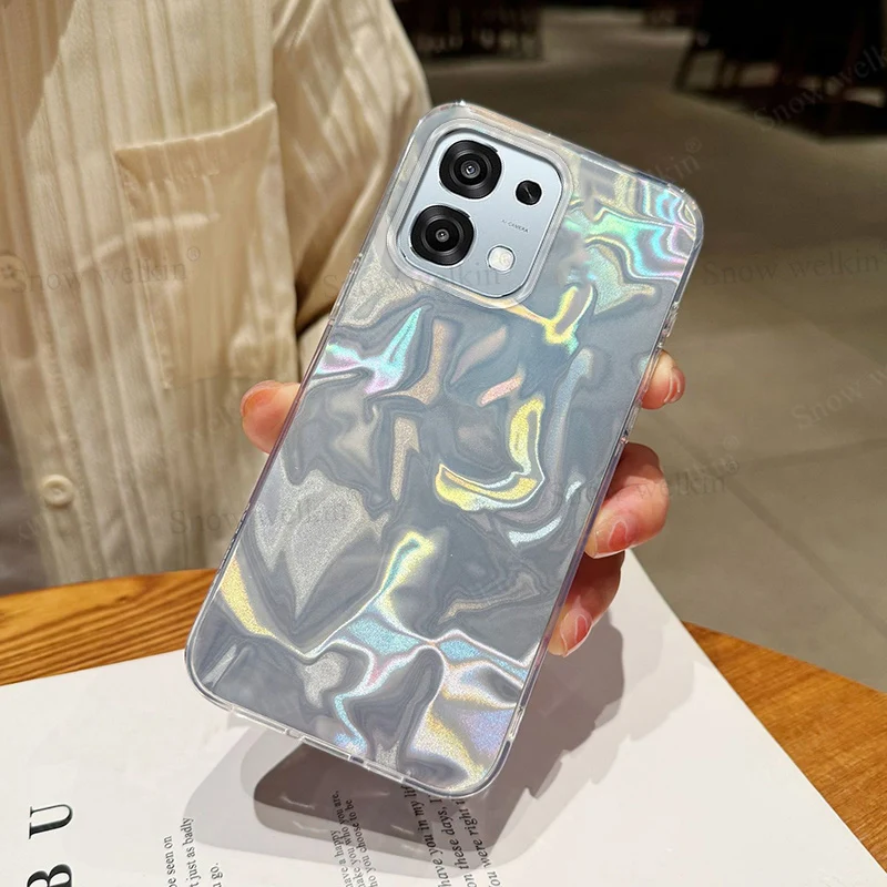 Funda de lujo con gradiente plateado láser para Oppo F31 OppoF31 Pro Plus ProPlus F31Pro Pro + + PC trasera TPU parachoques cubierta de teléfono a prueba de golpes
