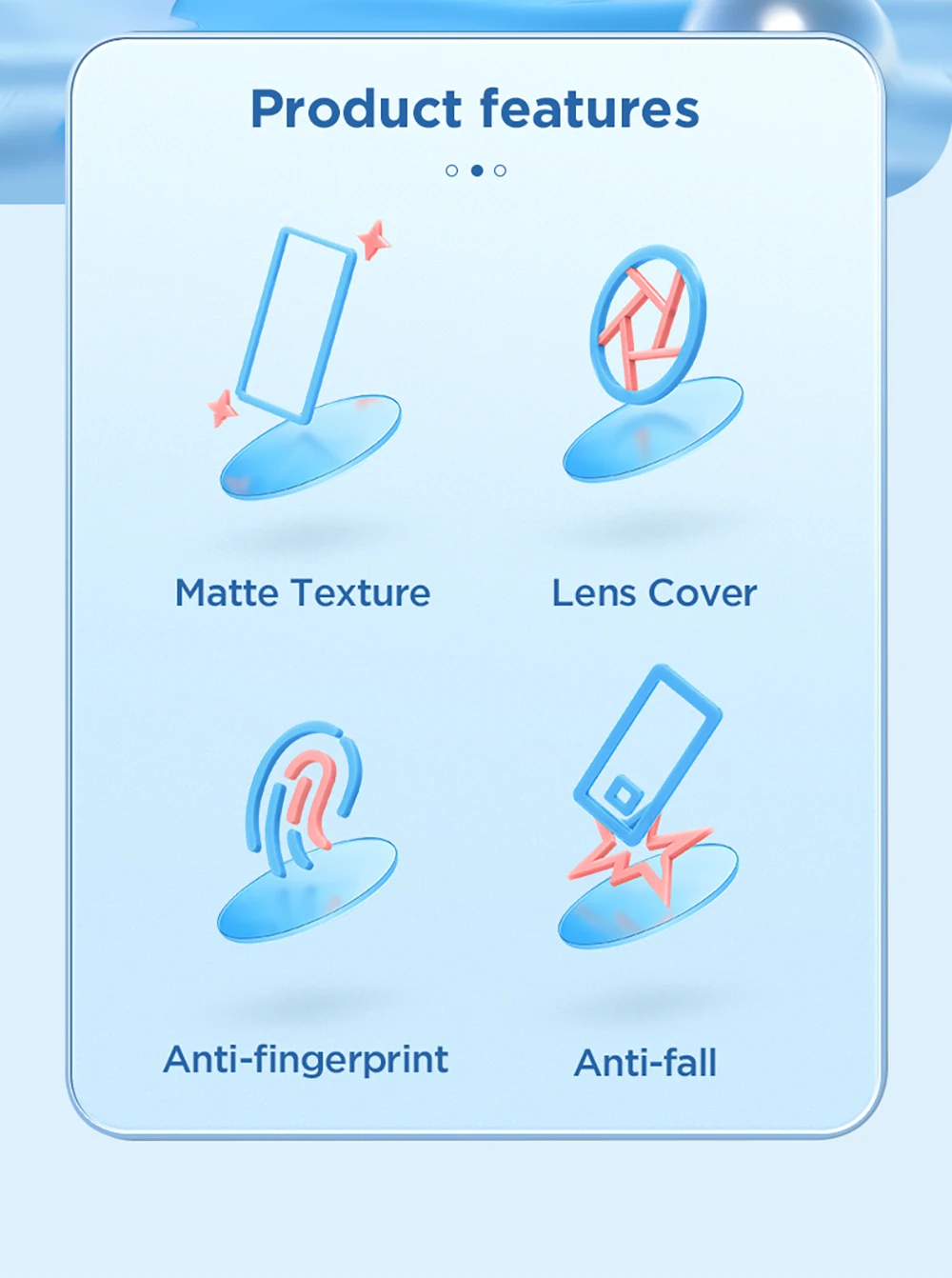 Textura mate, cubierta de lente, antihuellas, anticaída