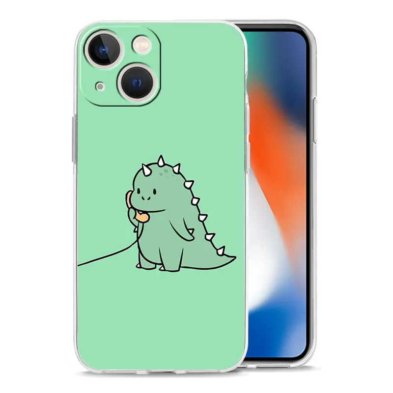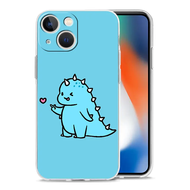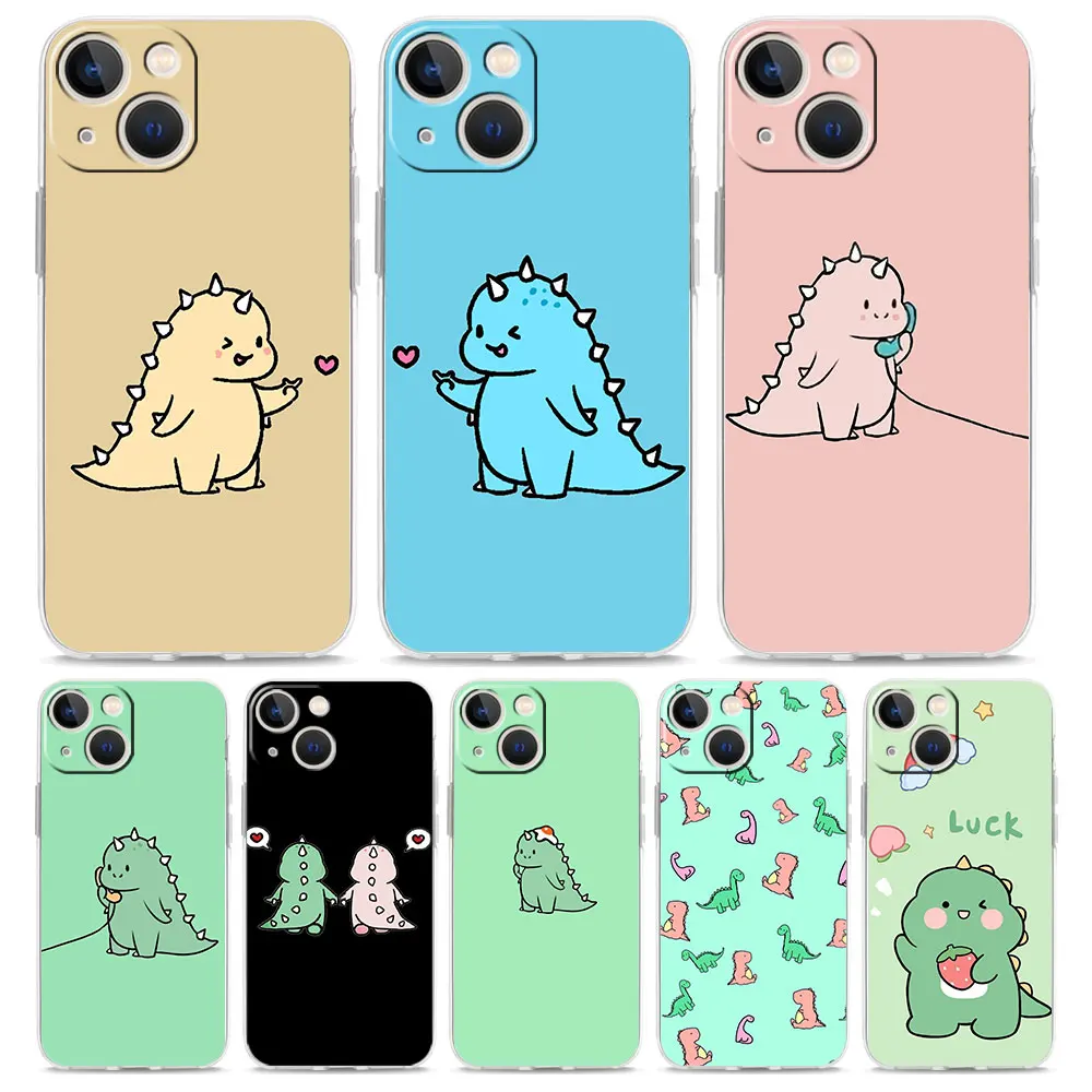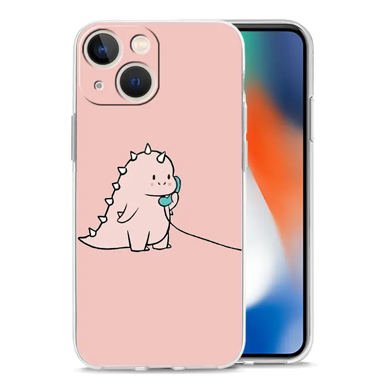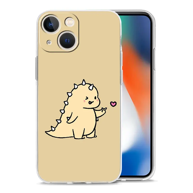 Comprar Funda de lujo para iPhone, 15, 14, 13, 12, 11 Pro Max, X, Xs, XR, 7, 8 Plus, parachoques, transparente, TPU, lindo dinosaurio, oso, pareja