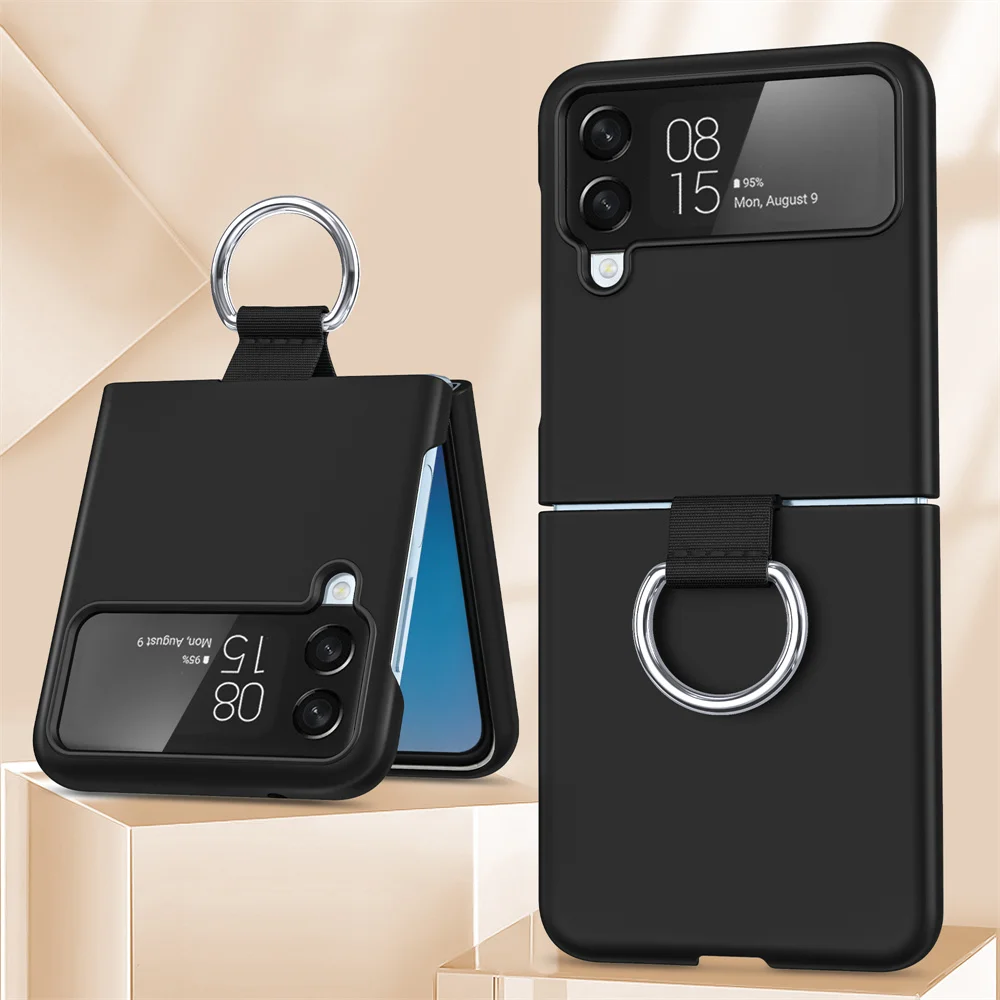 Funda de lujo mate con mango de anillo para dedo armadura de PC para Samsung Galaxy Z Flip ZFlip 6 5 4 3 Zflip6 Zflip5 Zflip4 Zflip3 Candy Funda