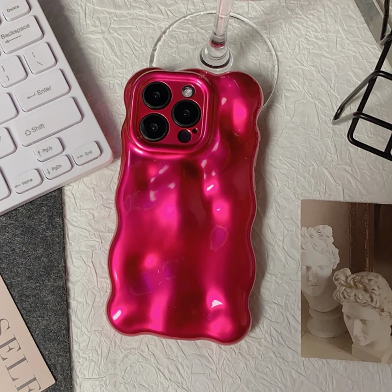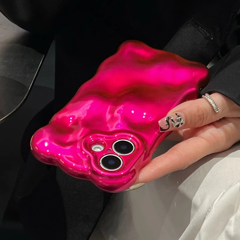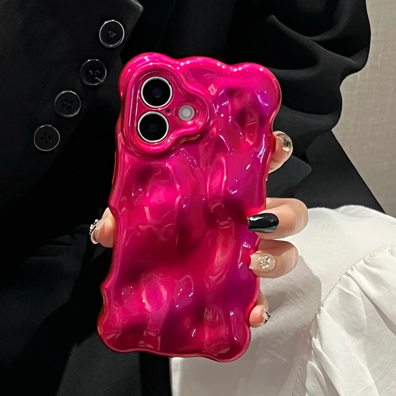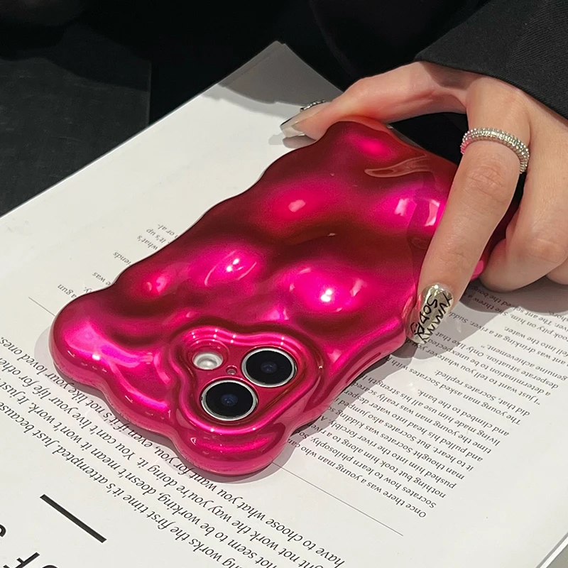 Funda con patrón de meteorito 3D brillante rosa a la moda de lujo para iPhone 16 Pro Max 13 14 12 11 15 Plus, funda trasera de teléfono con burbujas a prueba de golpes