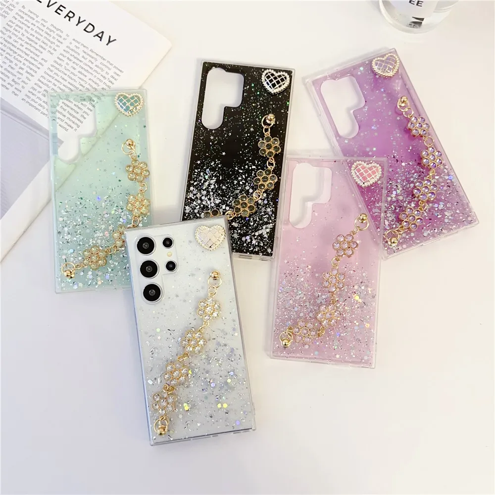Funda de lujo con purpurina para pulsera de flores para Xiaomi POCO X6 X3 X5 Pro C65 13 12 11 Lite 5G NE 11T 12T 13T Redmi 13C 12C 10C