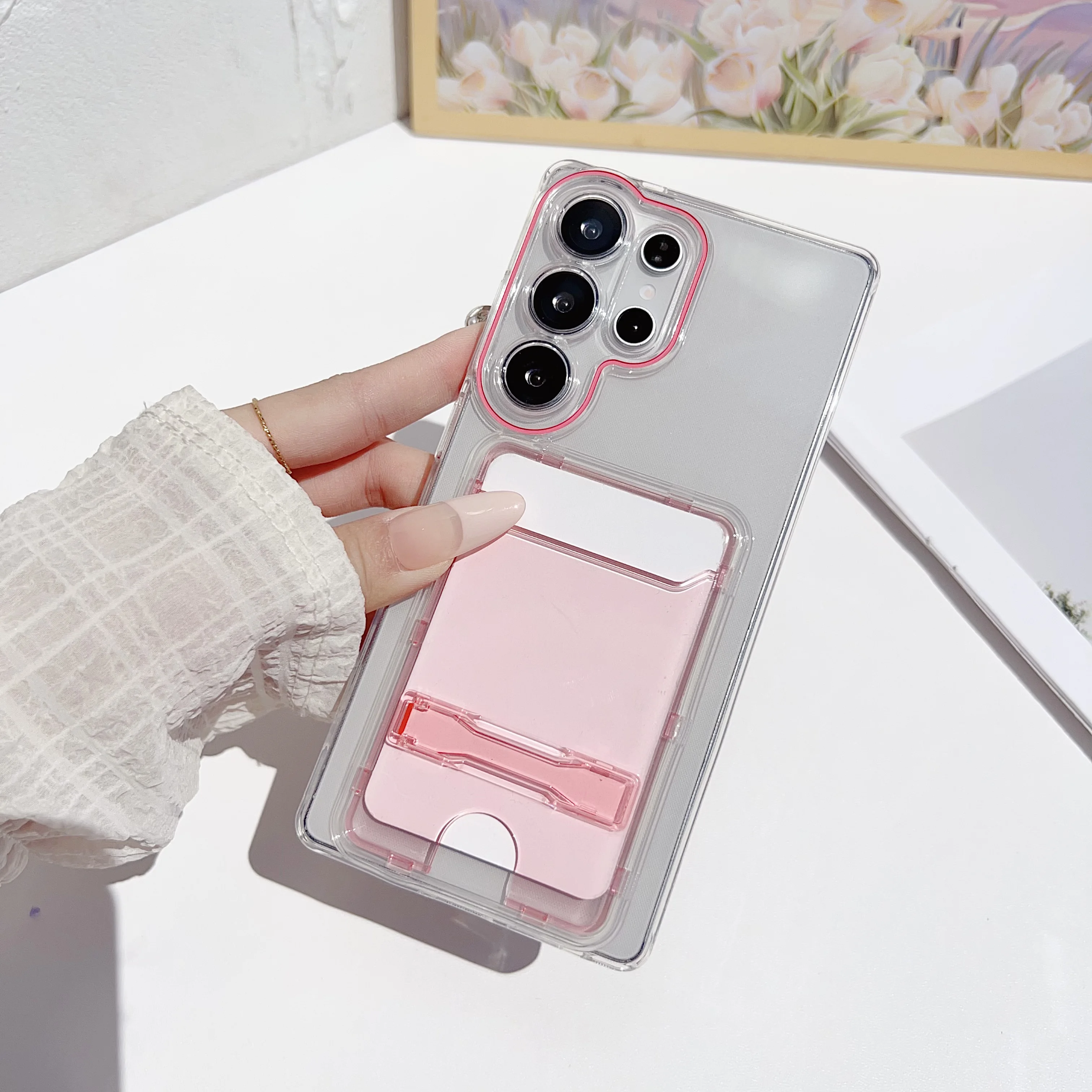 Cartera de lujo con ranura para tarjetas, funda de teléfono para Samsung Galaxy S25 S24 Ultra S22 S23, funda protectora de silicona suave a prueba de golpes