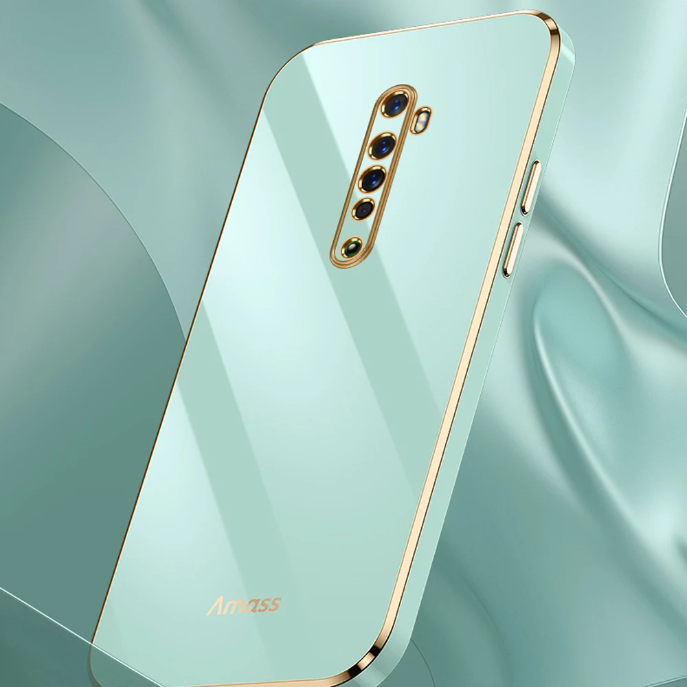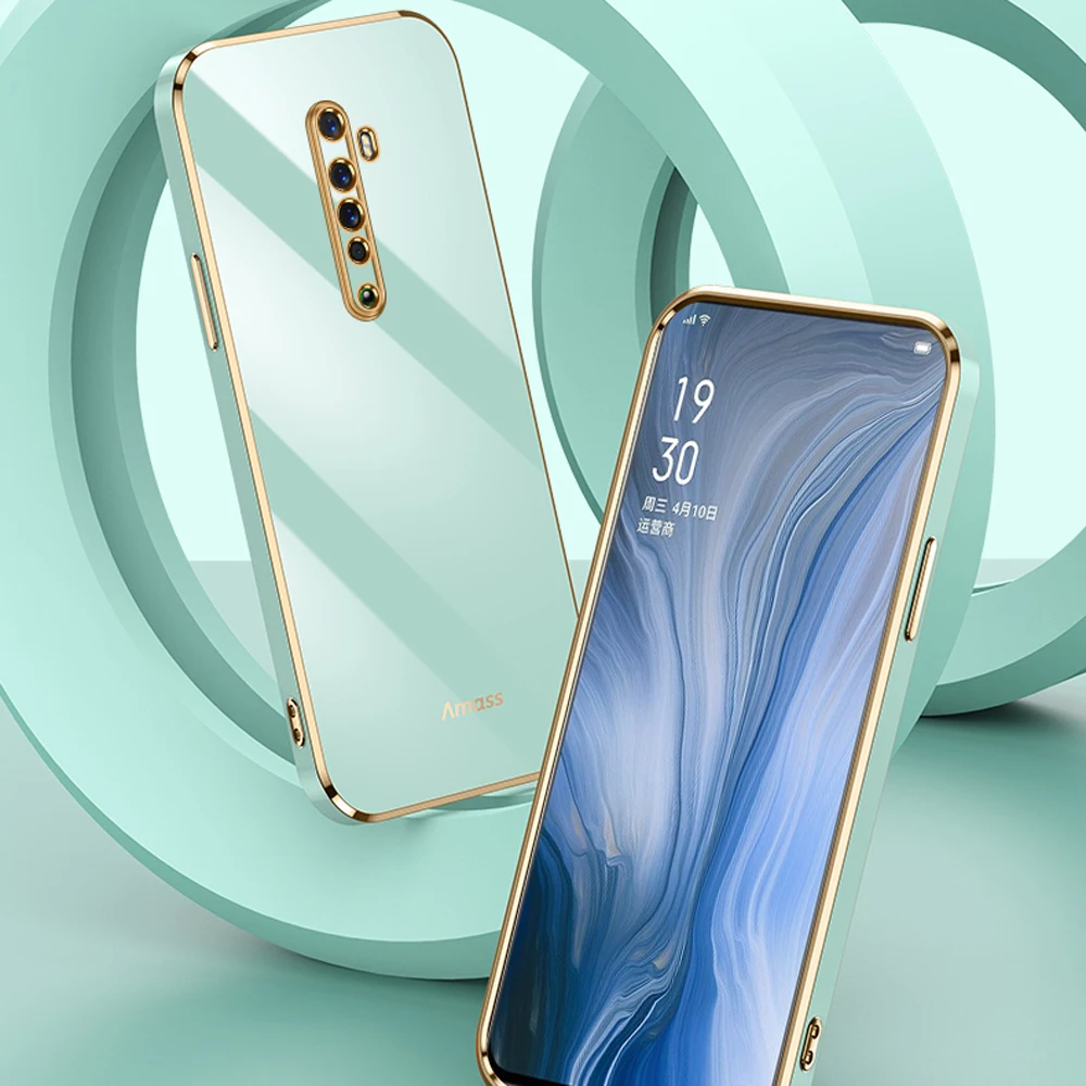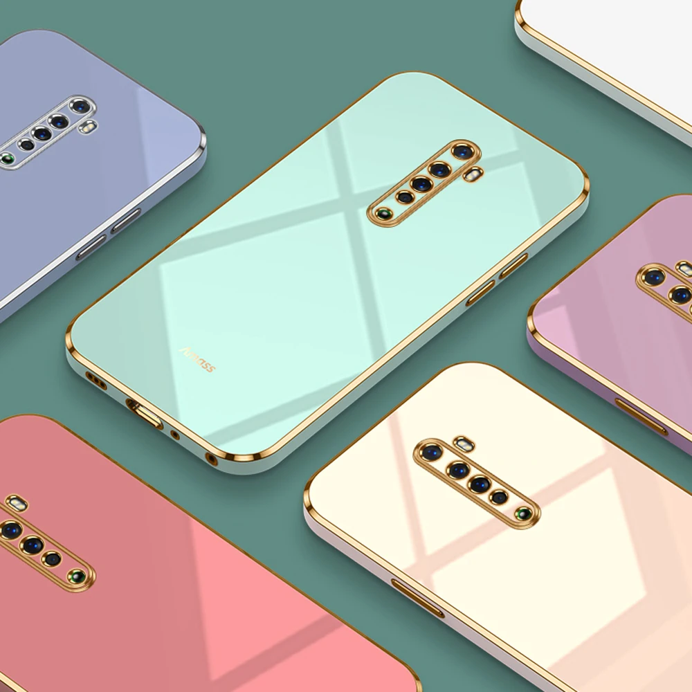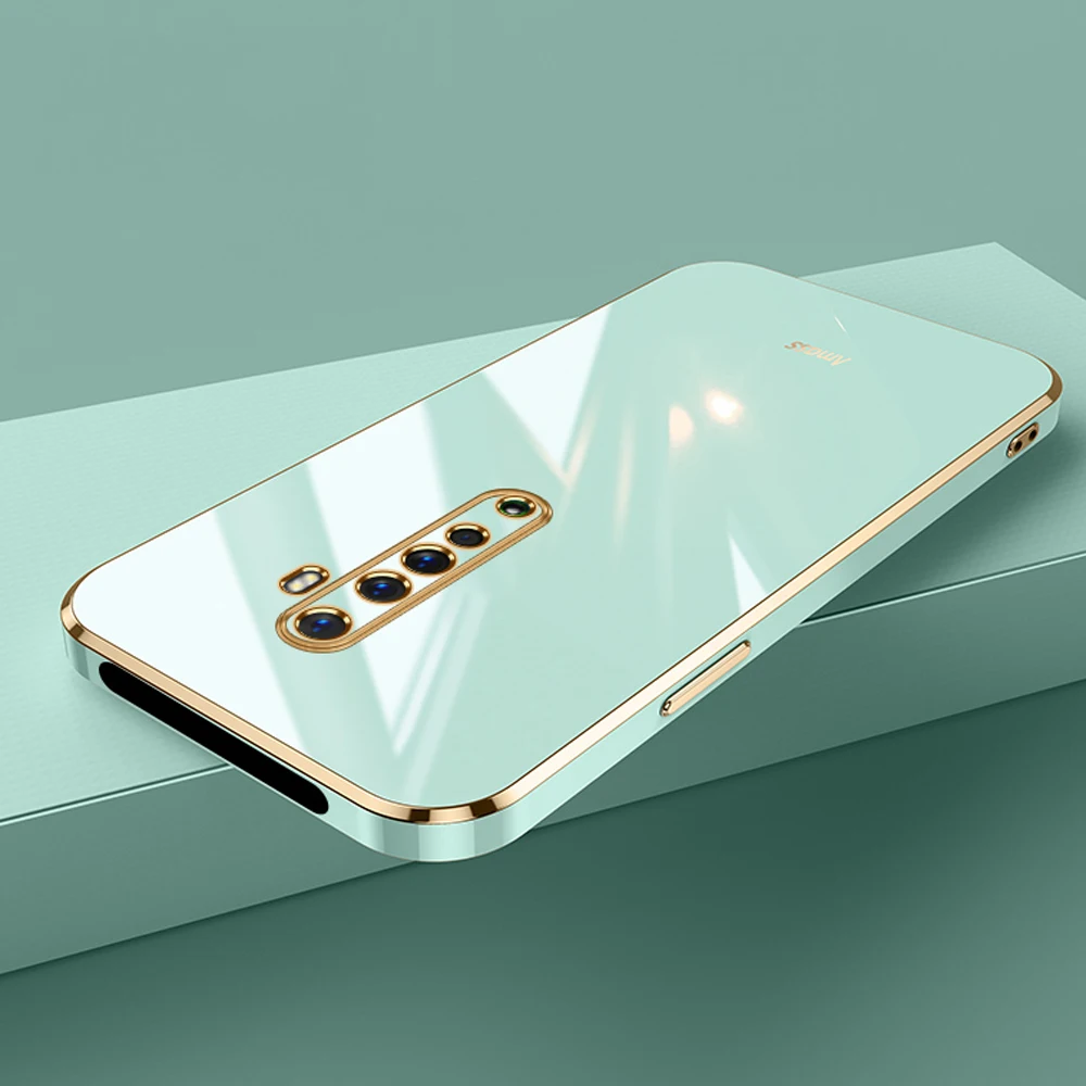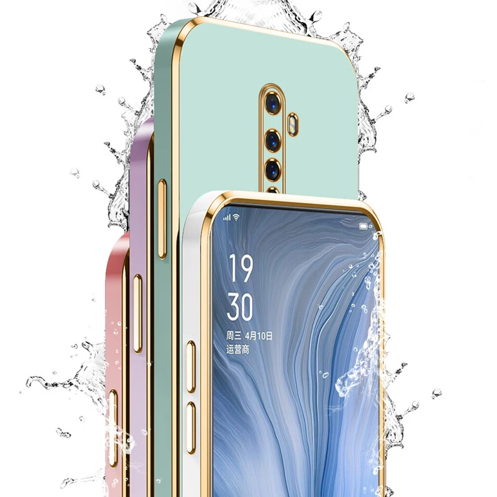 Comprar Funda de lujo con revestimiento cuadrado para OPPO Reno, carcasa trasera de silicona a prueba de golpes, CPH1907, CPH1917, cph1945