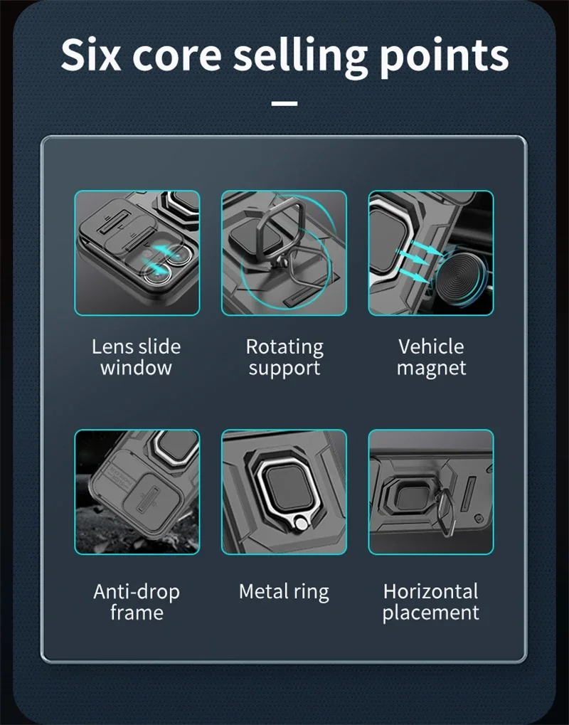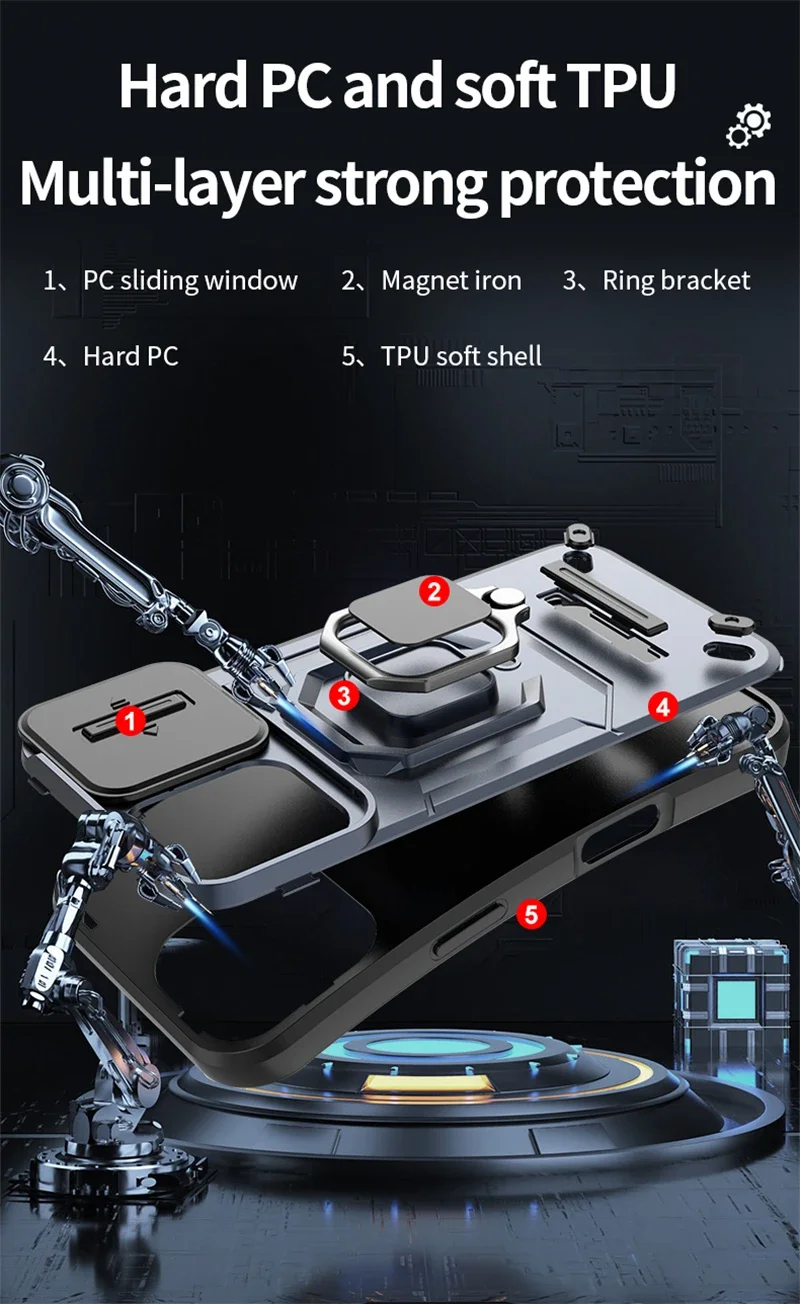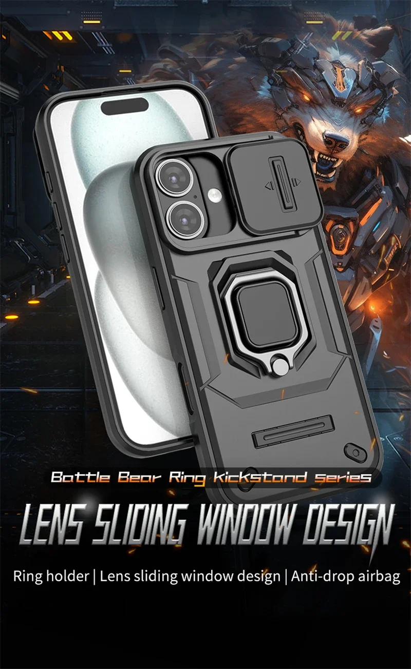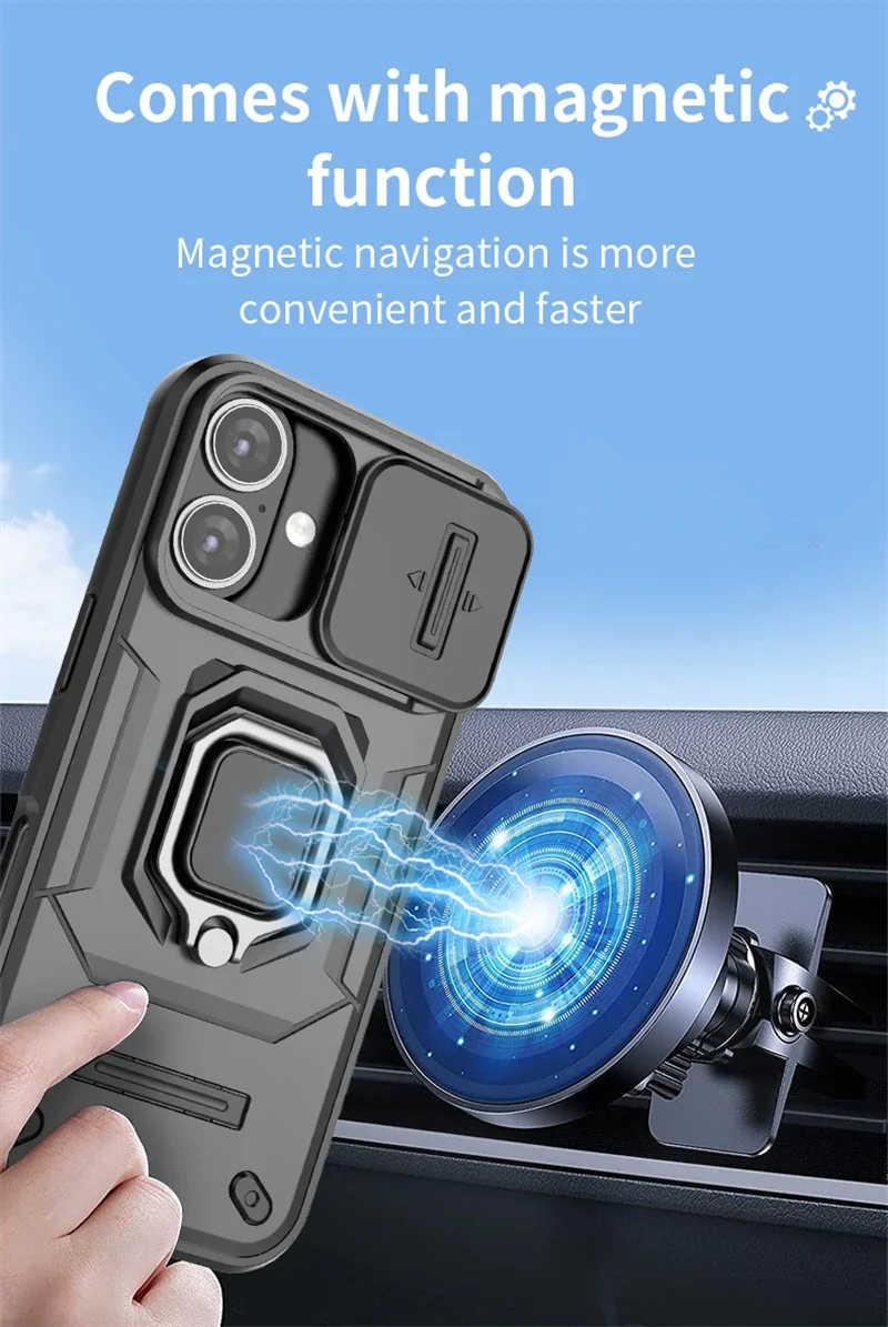 Funda de armadura de grado militar para lente de cámara con soporte de anillo de negocios de lujo para iPhone 13 14 15 16 Pro Max Plus 16Pro 15Pro 13