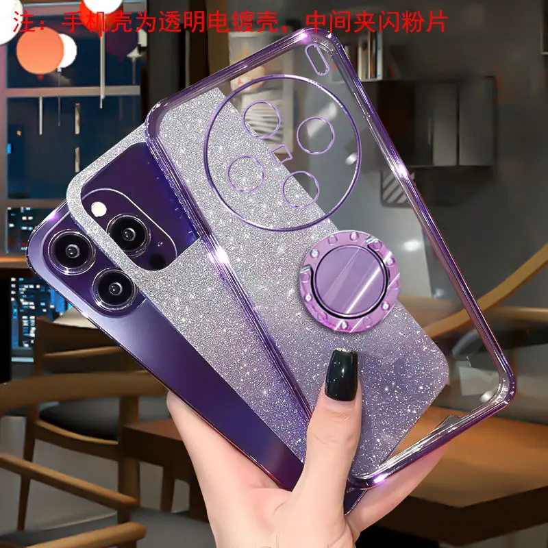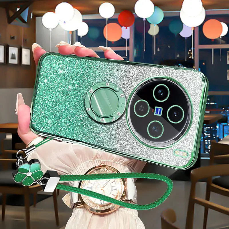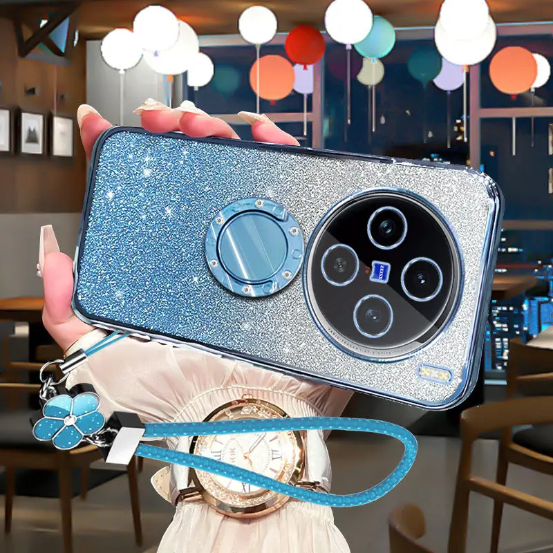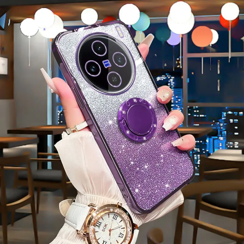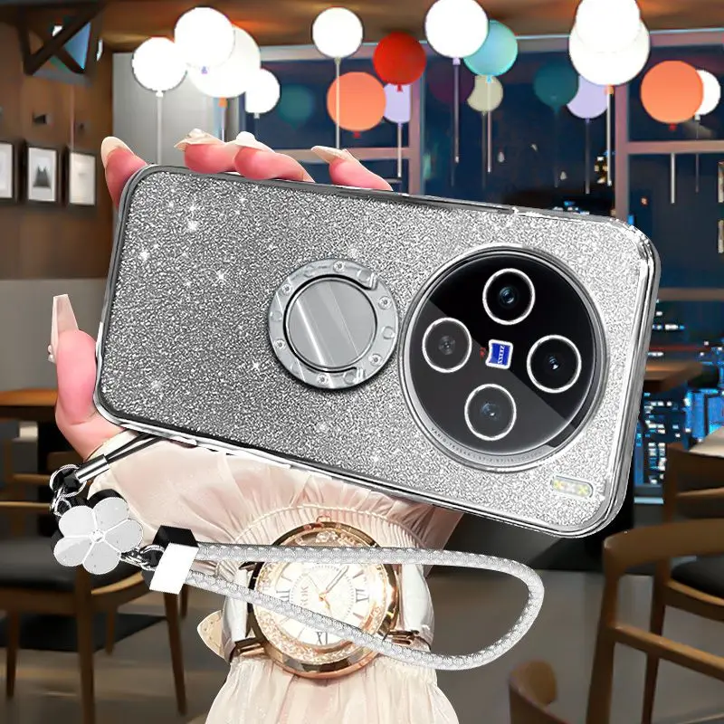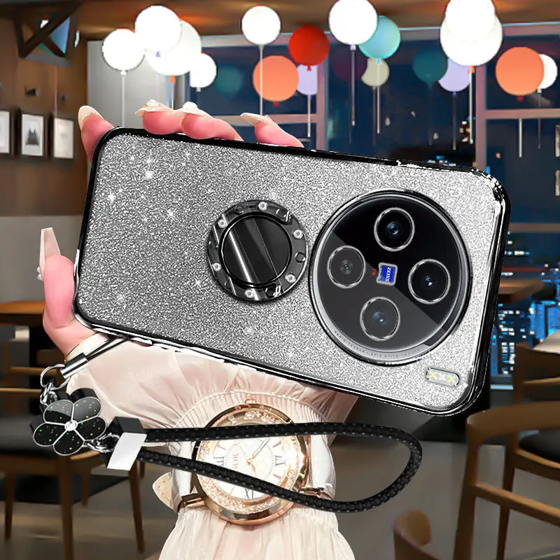 Funda de lujo con soporte de diamante a prueba de golpes para vivo x100 pro, cubierta protectora de lente transparente ultra brillante vivo x100s iqoo13 12 pro