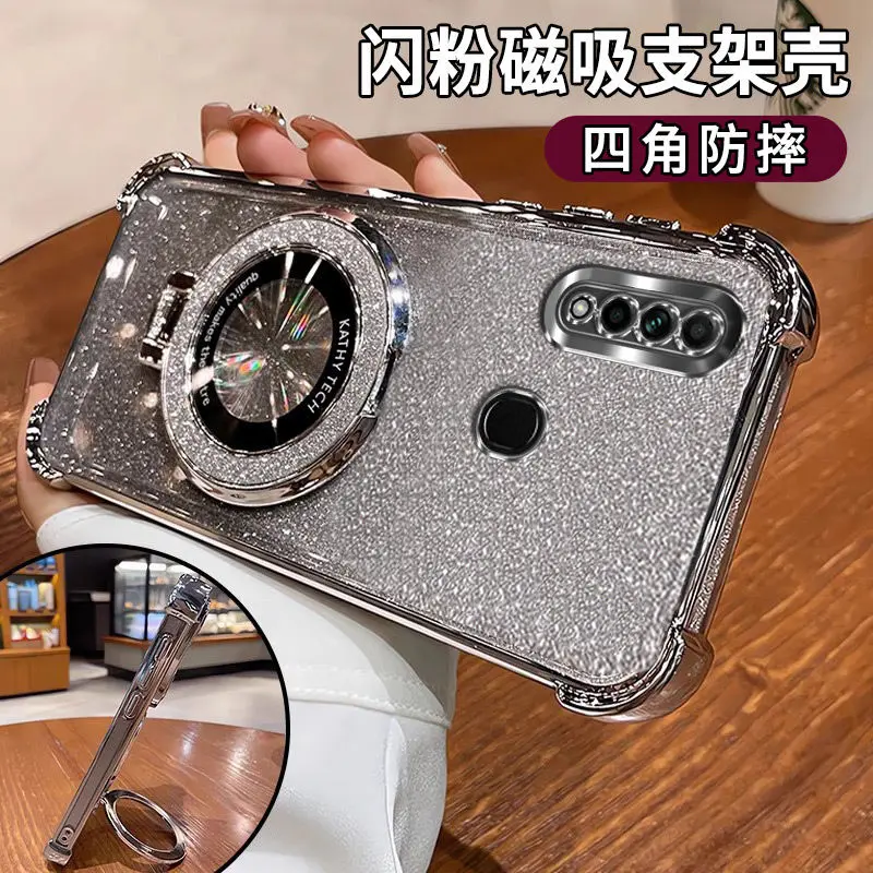 Comprar Funda de lujo con soporte magnético y purpurina para Huawei P30 lite Nova 4E, funda de silicona a prueba de golpes