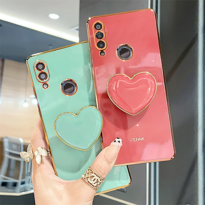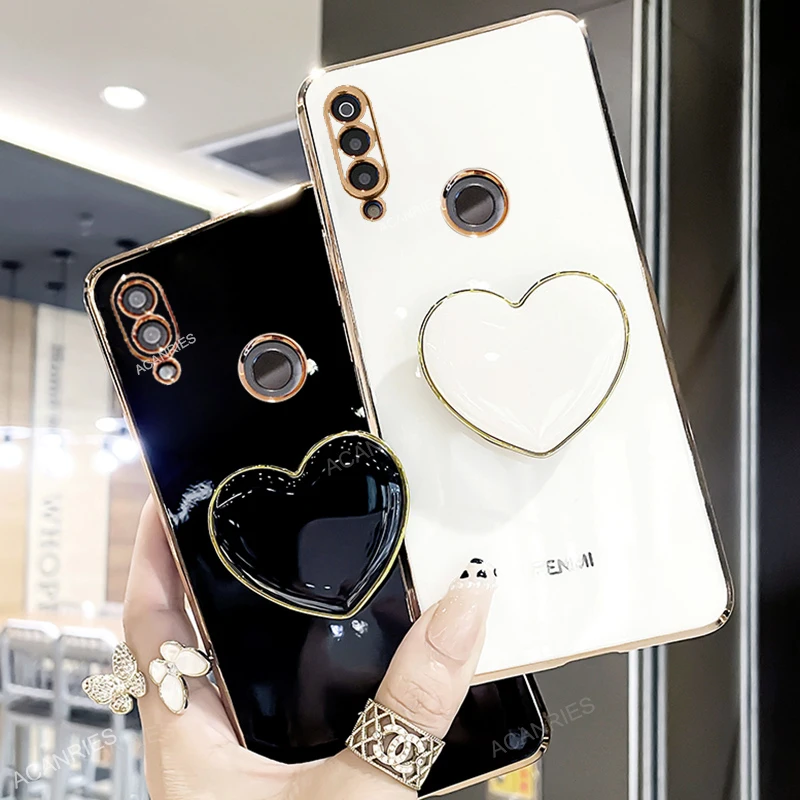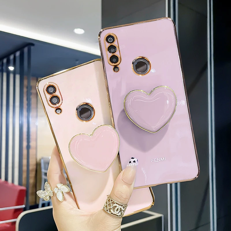 Funda de lujo con revestimiento de corazón de amor para teléfono Huawei P30 P20 P40 Lite P Smart Pro Plus 2019 30 20 funda de silicona con soporte para niña