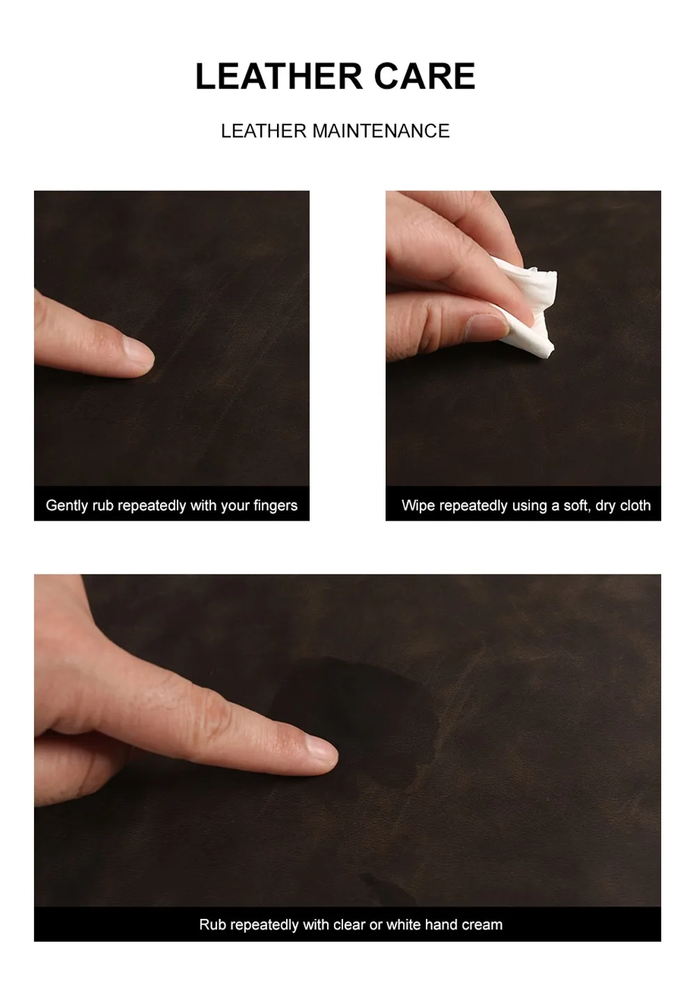 2.Limpie los artículos de cuero ligeramente, con un paño fino cuando haya agua.