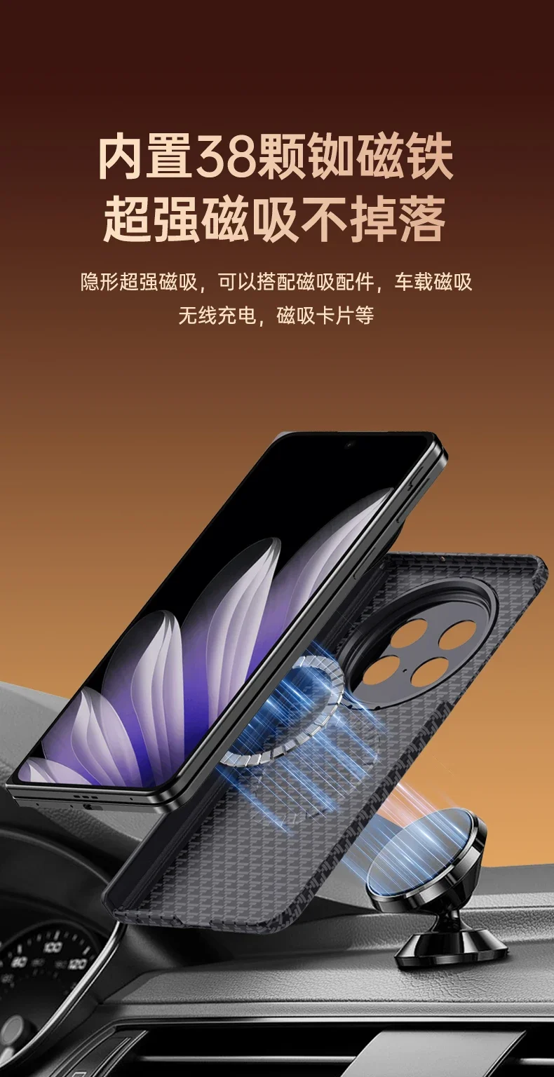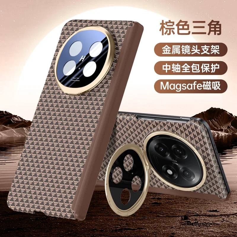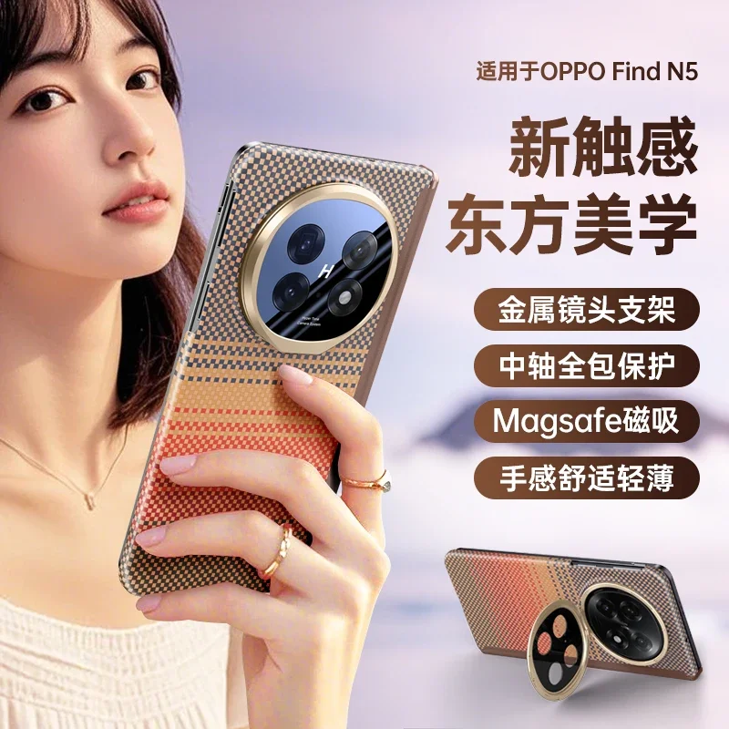 Funda de lujo con textura clásica mate para Oppo Find N5, soporte de lente con bisagra plegable, estuche de carga inalámbrico magnético incorporado sin película