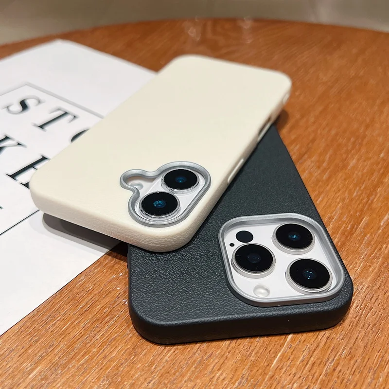 Comprar Funda de lujo con textura de cuero para negocios, fundas de teléfono para iPhone 11 12 13 14 15 16 Pro Max Plus, Funda marrón de silicona suave a prueba de golpes