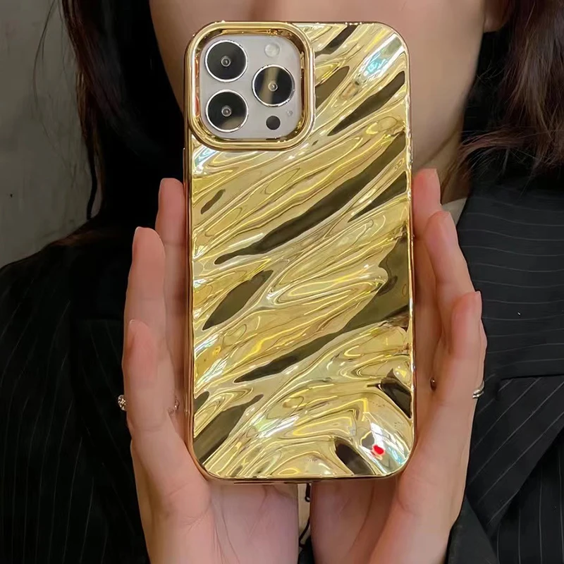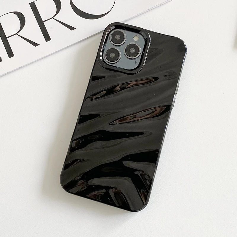Funda de lujo con textura ondulada y rizada 3D para iPhone 16 15 14 13 Pro Max, funda suave a prueba de golpes para teléfono