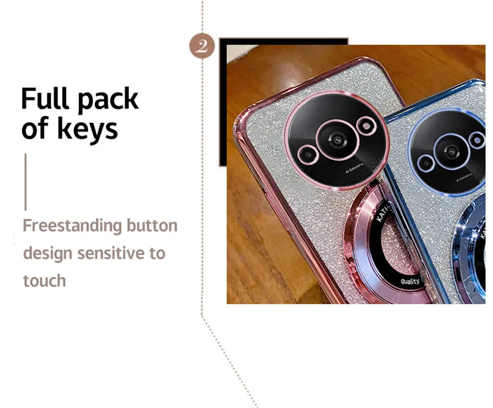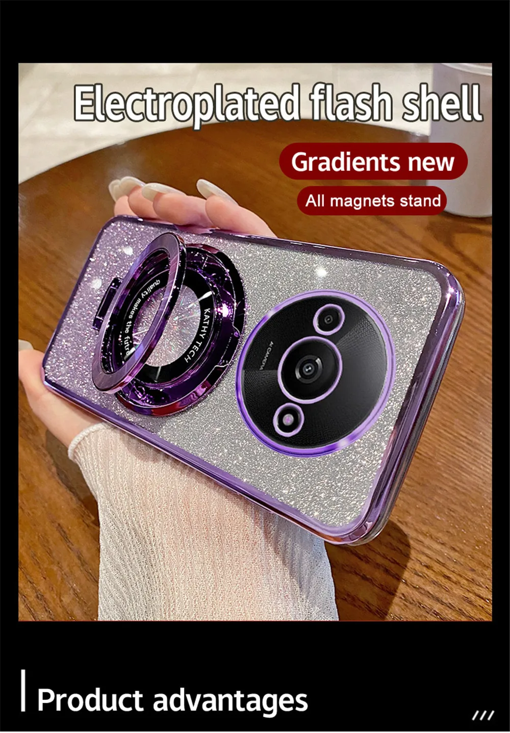 Funda Redmi A3 de lujo con soporte magnético, funda con purpurina para Xiaomi Redmi 13C 9C 9A 10 10A 10C 12 12C A1 Plus, funda blanda