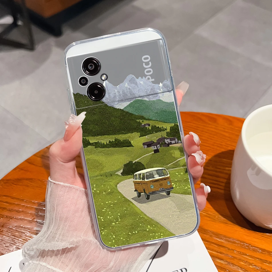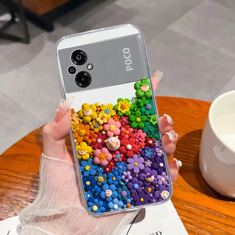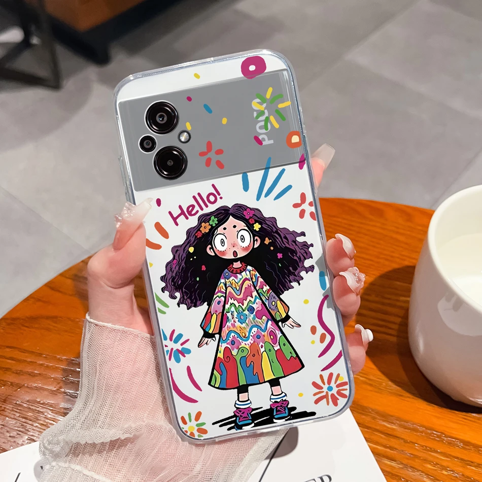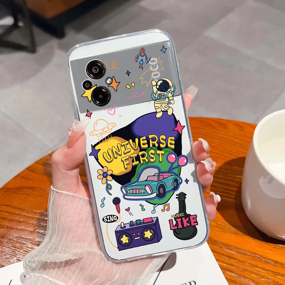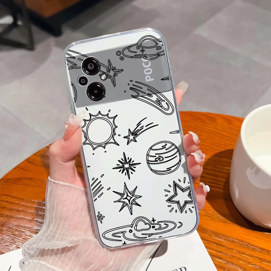 Funda para POCO M5 M5S, parachoques creativo transparente suave de dibujos animados para POCO M 5 POCOM5S, Fundas de teléfono, Funda protectora trasera anticaída