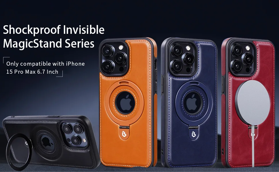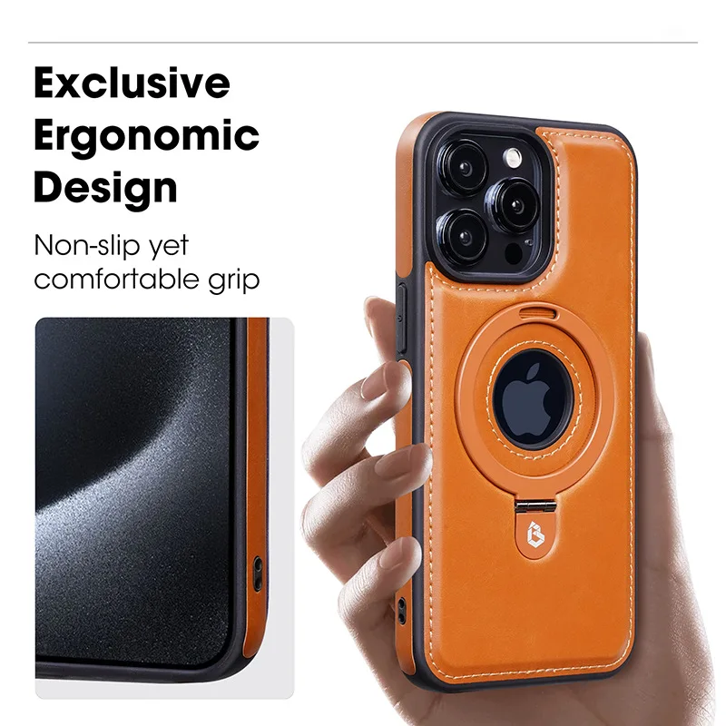 Funda magnética de cuero con soporte de anillo oculto para Magsafe IPhone 15 14 13 Pro Max Plus 15Pro 14Pro IPone Mac funda protectora