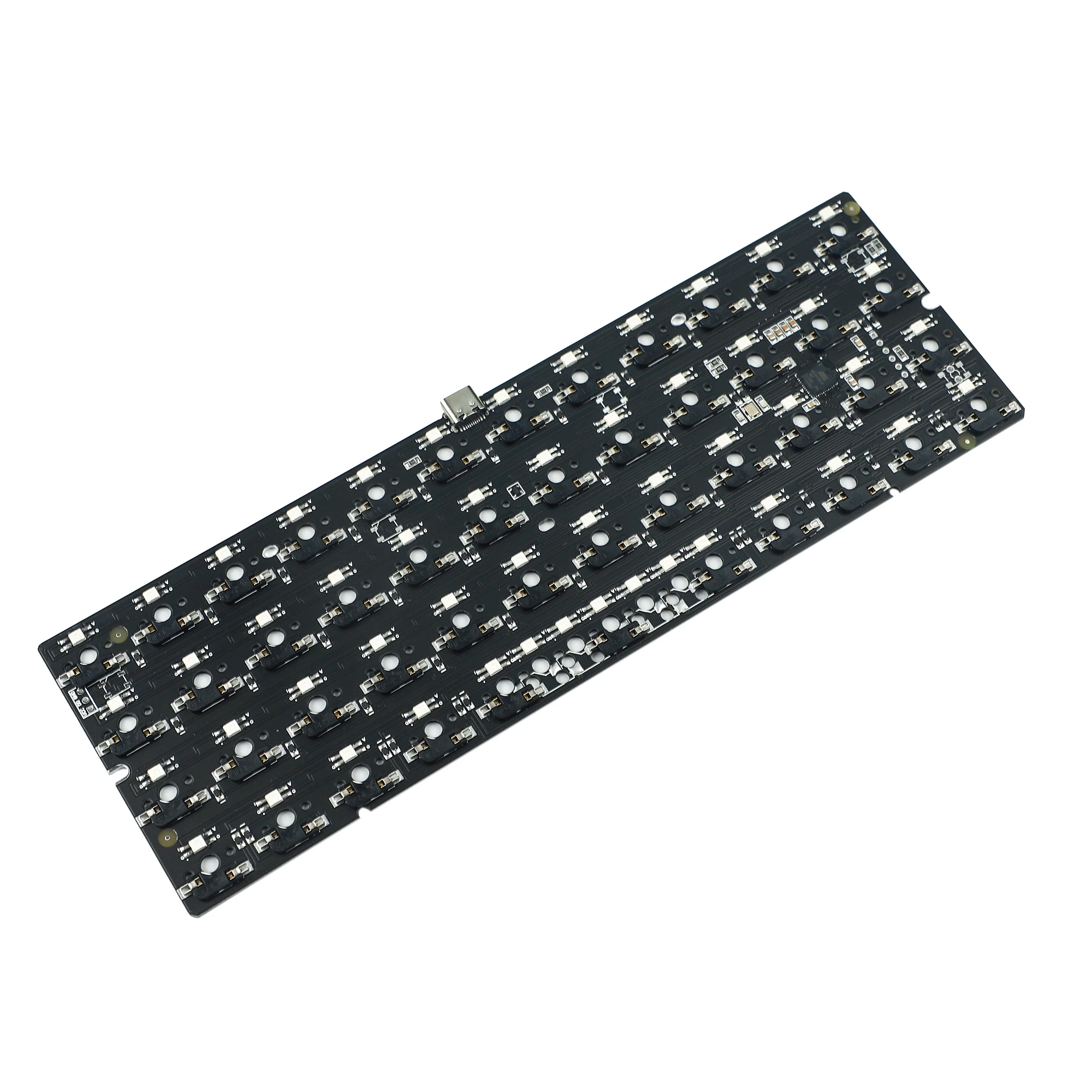 Caja de madera + placa negra de aluminio + PCB Hotswap tipo C con LEDs de interruptor RGB + interruptores + ensamblados + pies de goma + cable