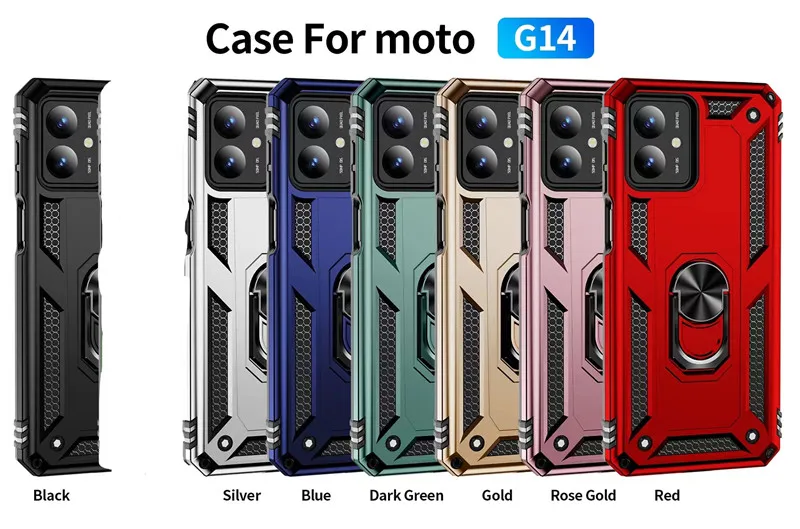 Comprar Funda magnética con anillo de coche para Motorola Moto G14, armadura a prueba de golpes, fundas de teléfono para Moto G 14, soporte trasero