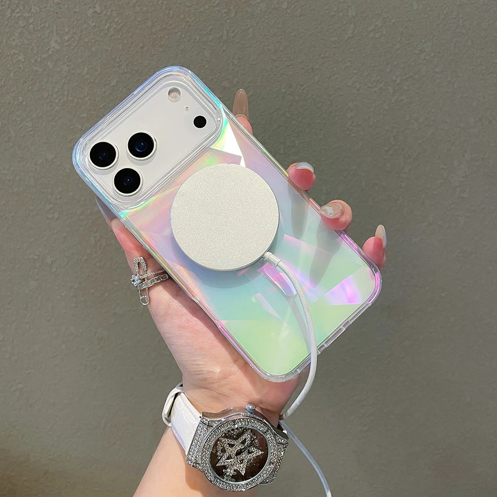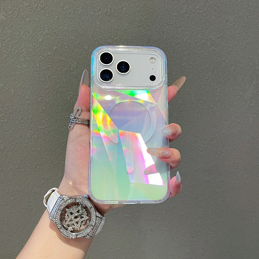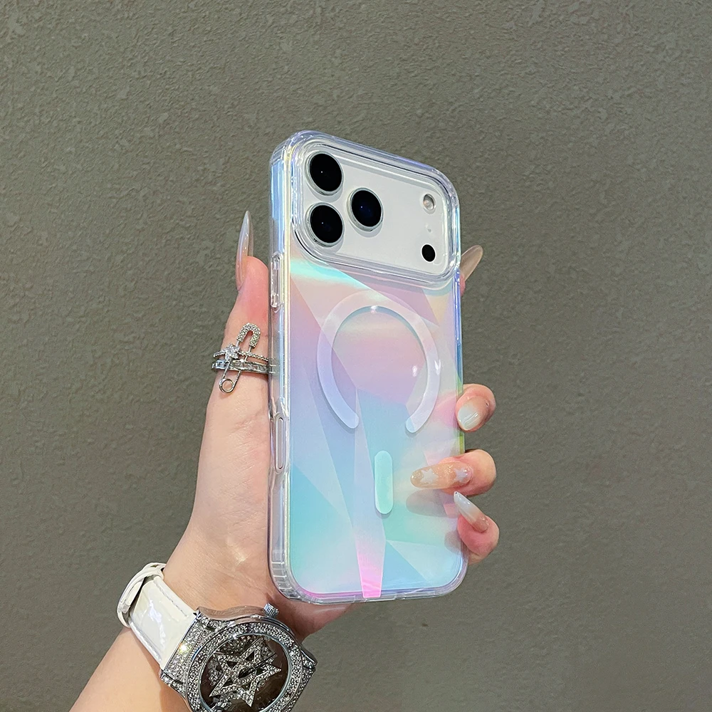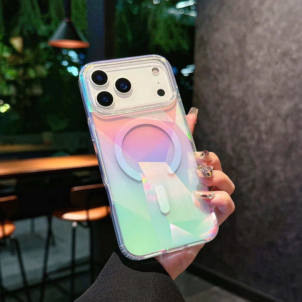 Funda magnética con gradiente láser Aurora para iPhone 17 16 15 14 13 12 Pro Max Plus 11 Carga inalámbrica de aire Compatible con funda a prueba de golpes Magsafe