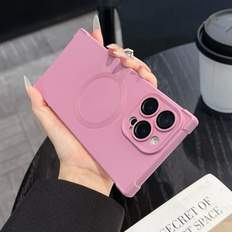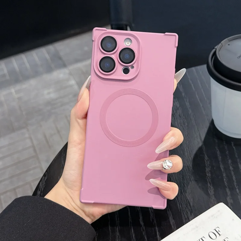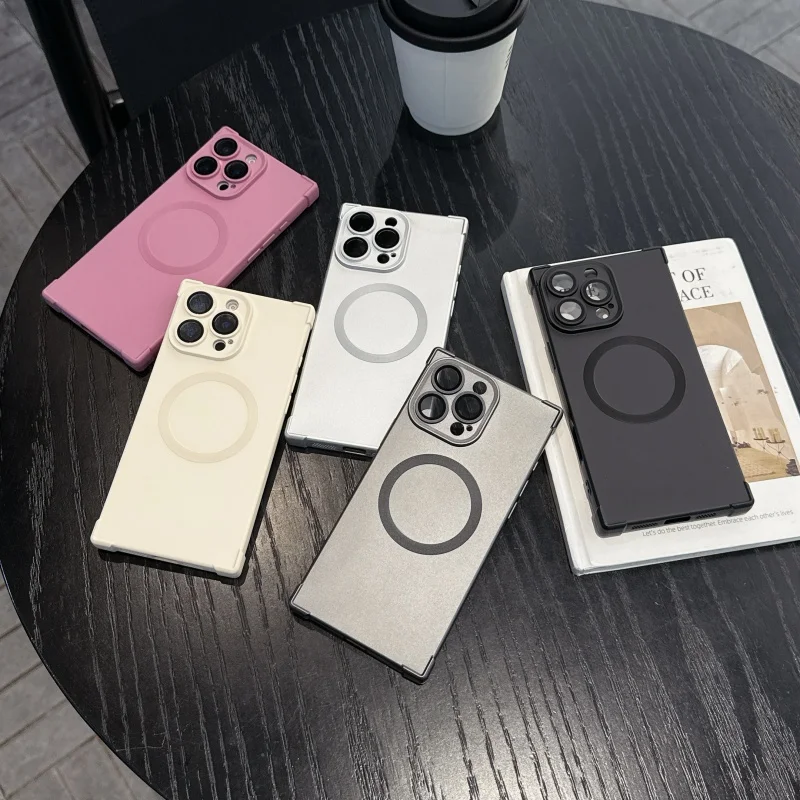 Funda magnética de carga inalámbrica con borde recto cuadrado de ángulo recto Simple para funda Magsafe para iPhone 16 15 14 13 Pro Max