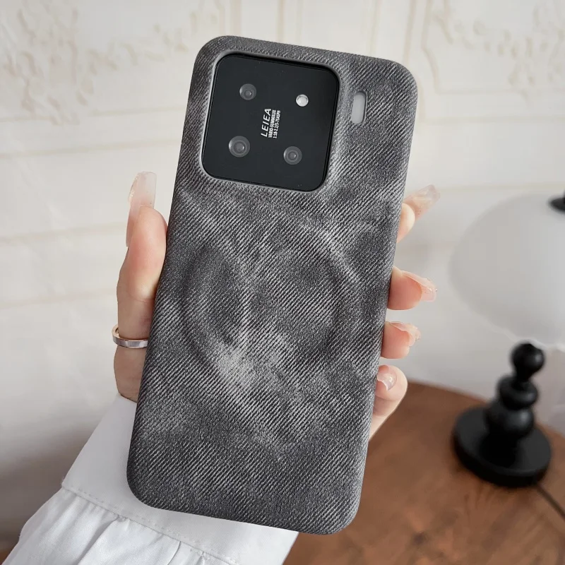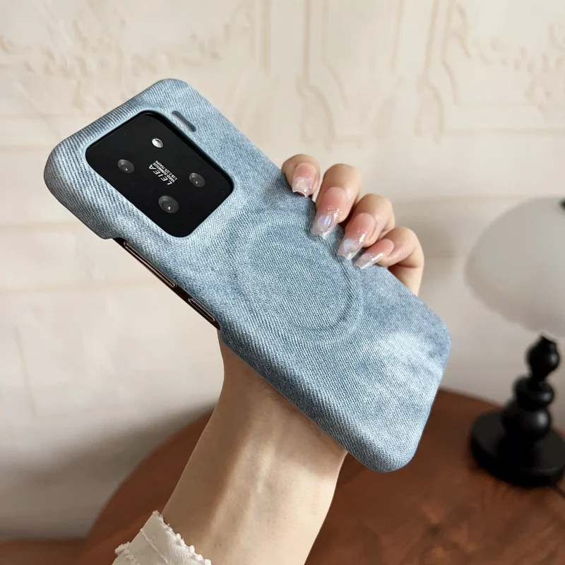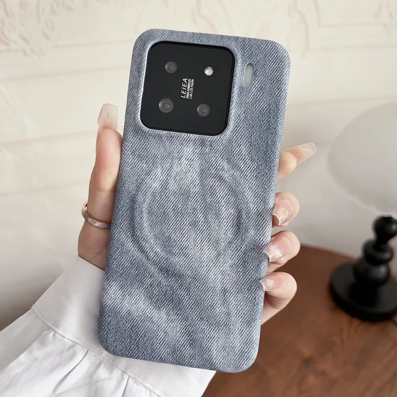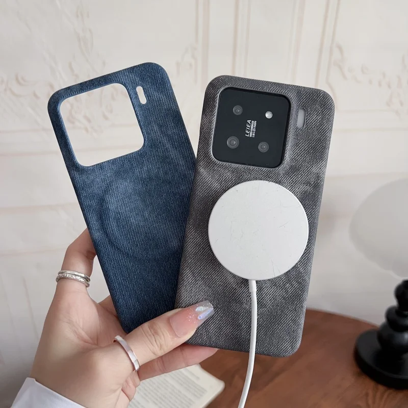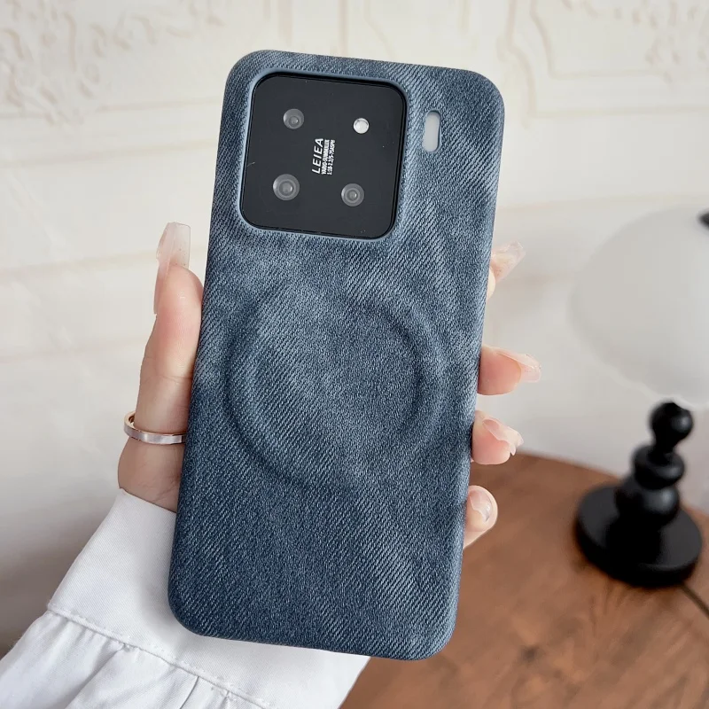 Comprar Funda magnética de carga inalámbrica de cuero suave con textura de tela vaquera Simple para Xiaomi Mi 15 Pro Ultra a prueba de golpes