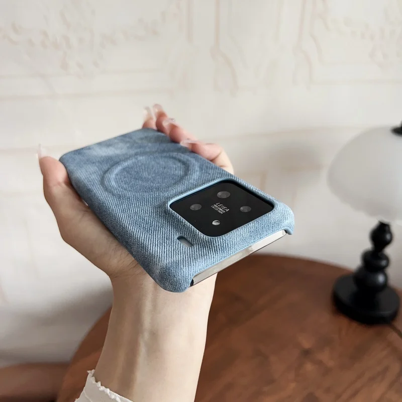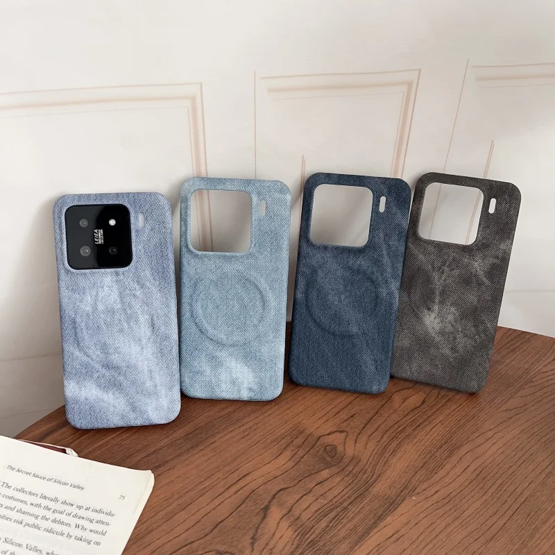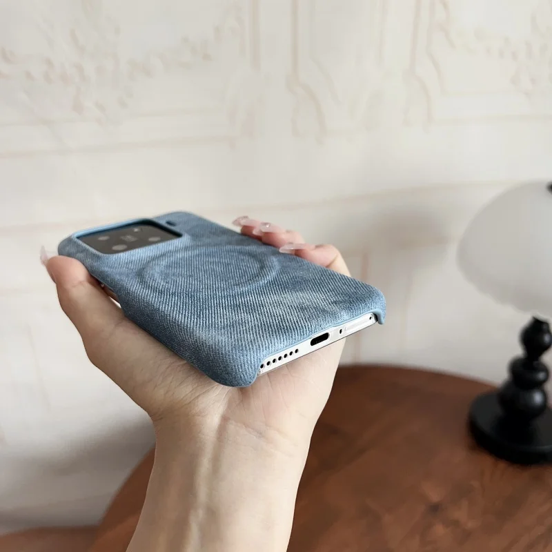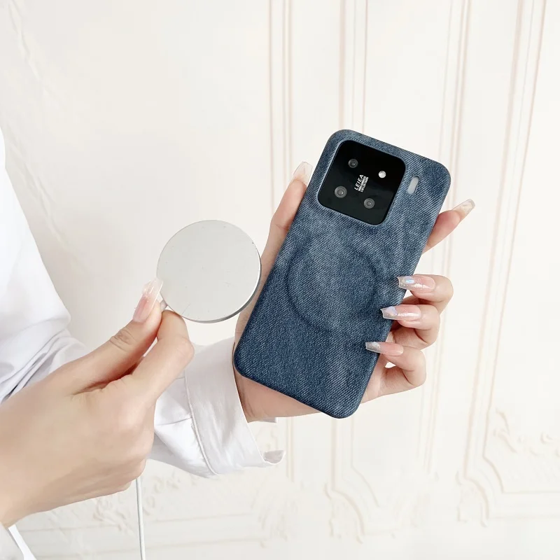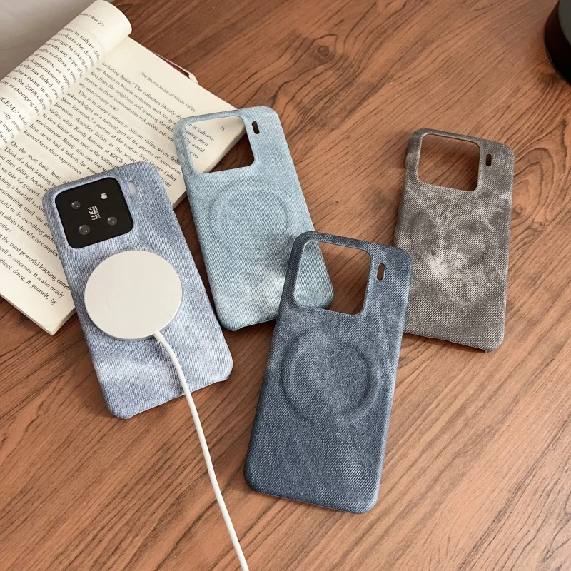 Comprar Funda magnética de carga inalámbrica de cuero suave con textura de tela vaquera Simple para Xiaomi Mi 15 Pro Ultra a prueba de golpes