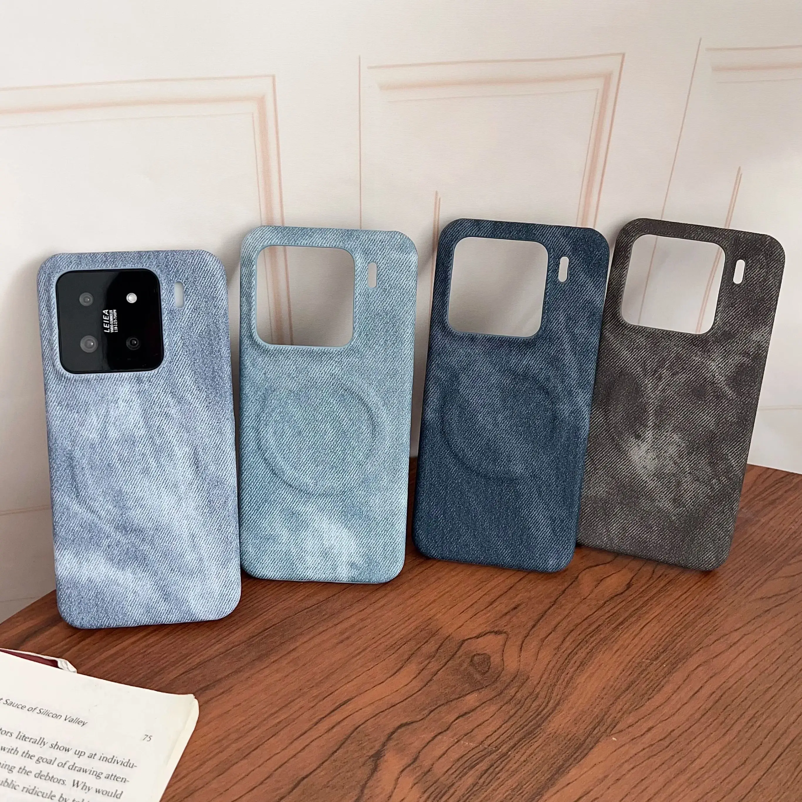 Comprar Funda magnética de carga inalámbrica de cuero suave con textura de tela vaquera Simple para Xiaomi Mi 15 Pro Ultra a prueba de golpes