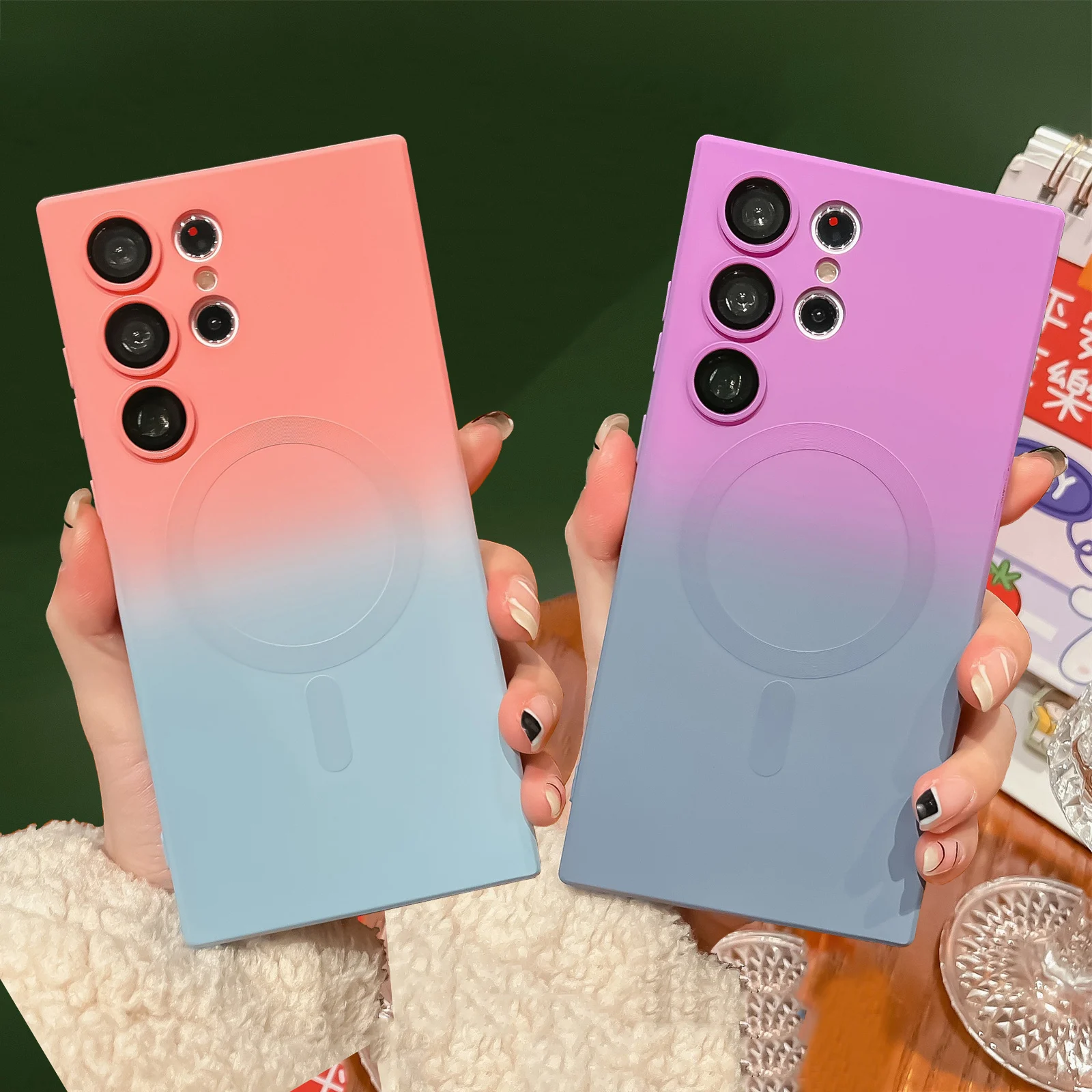 Comprar Funda magnética de carga inalámbrica Magsafe para Samsung Galaxy S23 S22 Ultra S21 Plus, funda mate de silicona suave de Color degradado