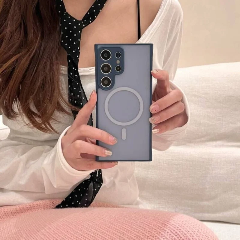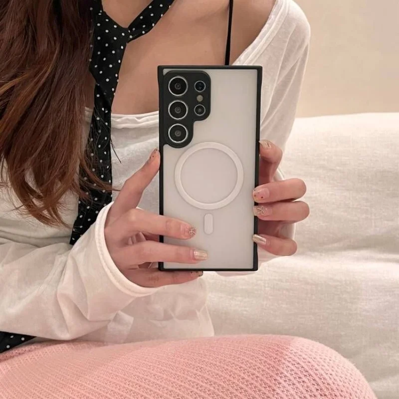 Funda magnética de carga inalámbrica sin marco, translúcida, mate, delgada, para Samsung Galaxy S25 S24 S23 Plus, funda Ultra dura a prueba de golpes