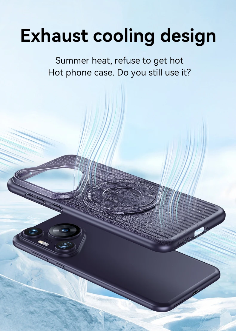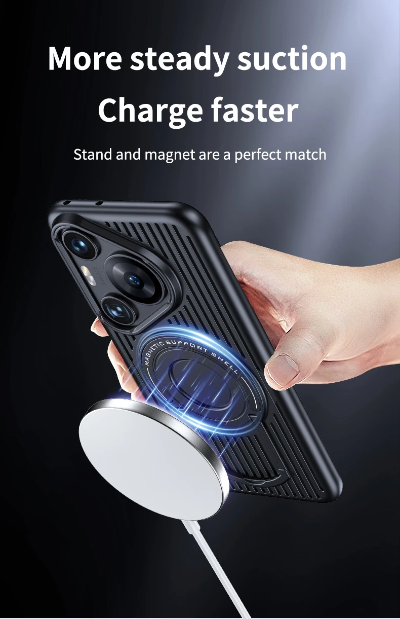 Funda de carga inalámbrica magnética con disipación de calor, funda de soporte de plástico duro a prueba de golpes para Huawei Pura 70 Pura70 Pro Plus Ultra