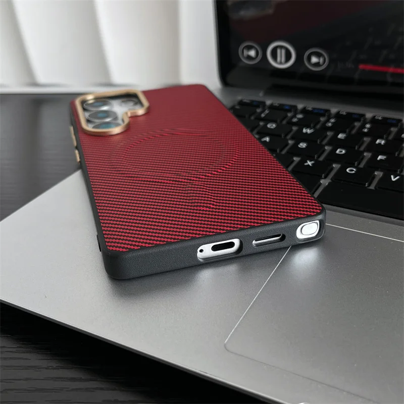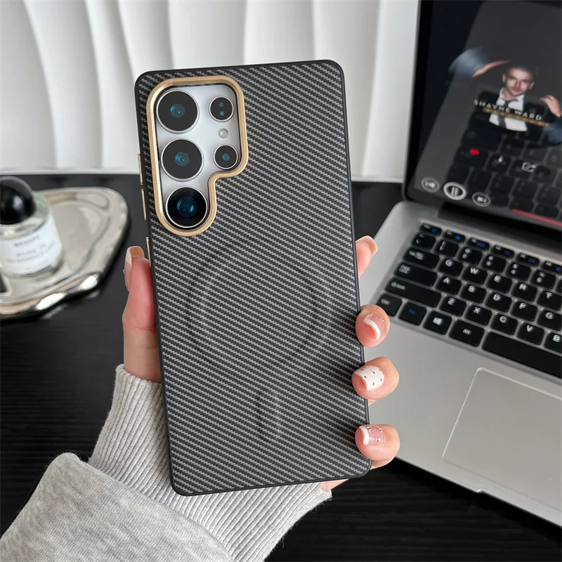 Funda magnética de carga inalámbrica con textura de fibra de carbono mate para Samsung Galaxy S25 S24 Plus S23 Ultra