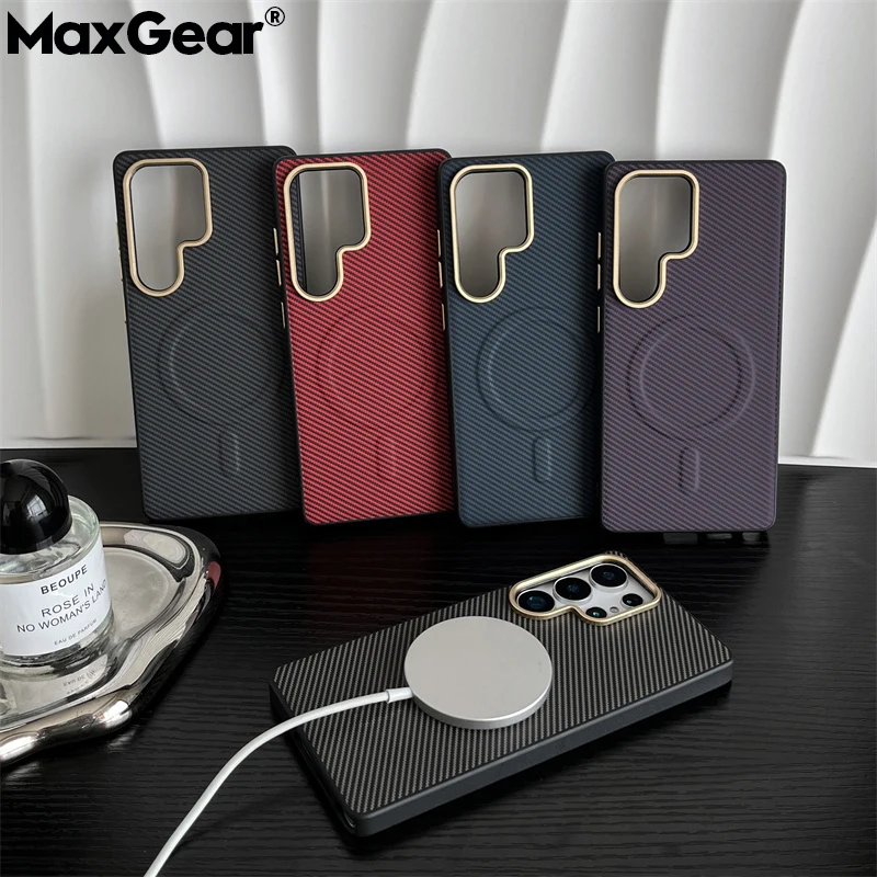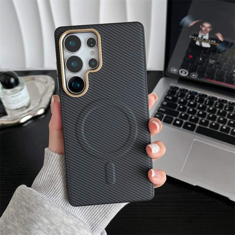 Funda magnética de carga inalámbrica con textura de fibra de carbono mate para Samsung Galaxy S25 S24 Plus S23 Ultra