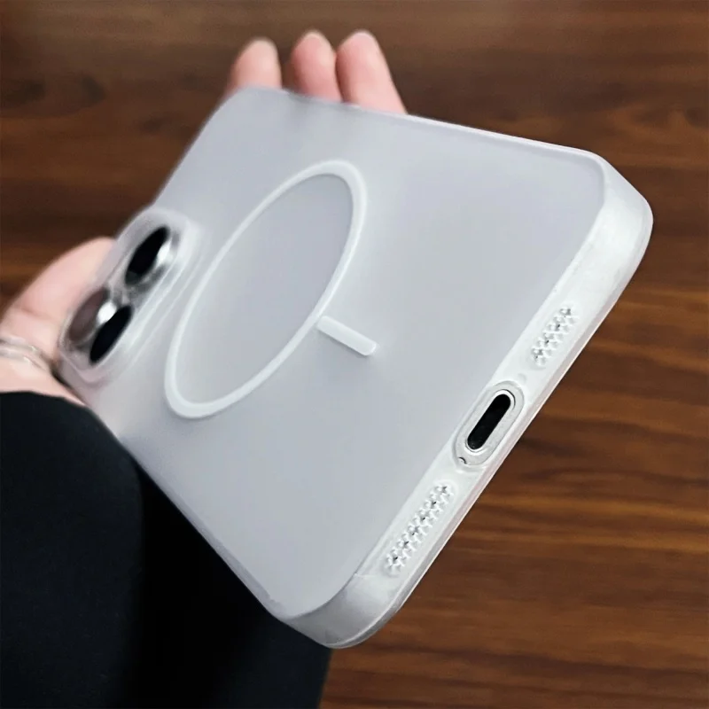 Funda magnética de carga inalámbrica translúcida mate de lujo para Magsafe para iPhone 16 15 14 13 12 Pro Max, cubierta dura a prueba de golpes para PC