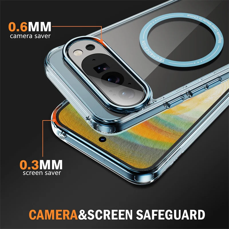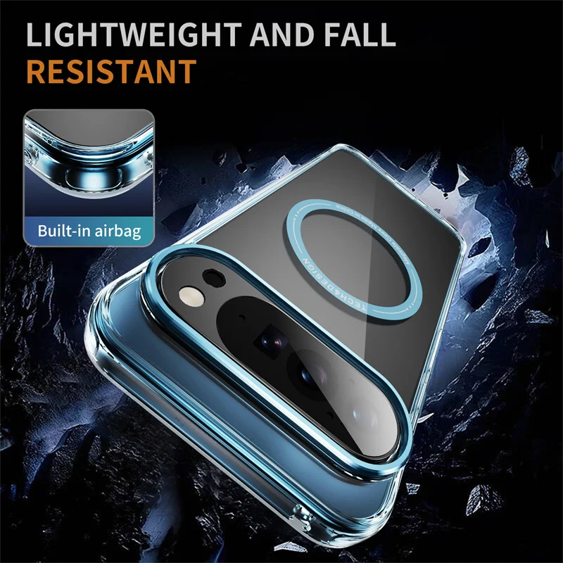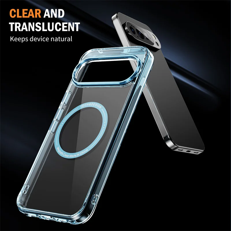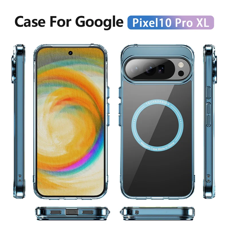 Funda magnética de carga inalámbrica transparente con revestimiento delgado para Google Pixel 8 9 10 Pro XL 8A 9A, cubierta transparente a prueba de golpes