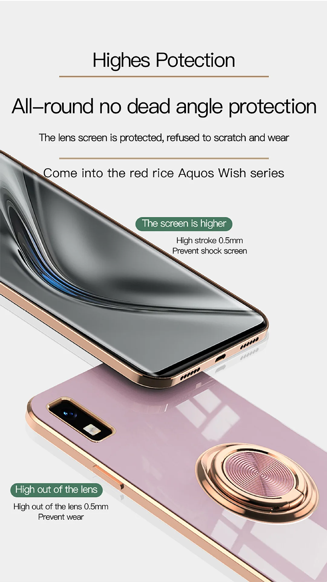 Si tiene alguna pregunta sobre la política de devoluciones, ¡no dude en contactarnos! Si el producto está dañado u otro problema causado por el proveedor, puede devolvernos el artículo en su estado original para un reembolso o un cambio. Póngase en contacto con nosotros para obtener los detalles solo en un plazo de 7 días después de recibir el paquete.Comprar Funda magnética chapada en anillo para Sharp Aquos wish 3, funda de TPU suave a la moda, fundas antigolpes de Color de lujo para Aquos wish3