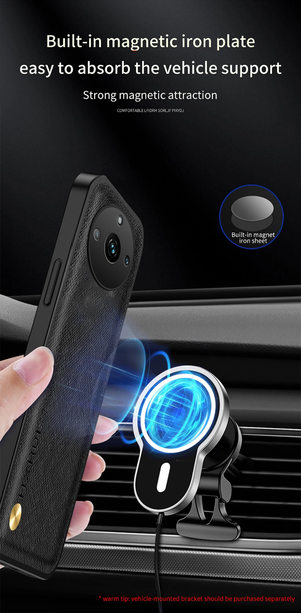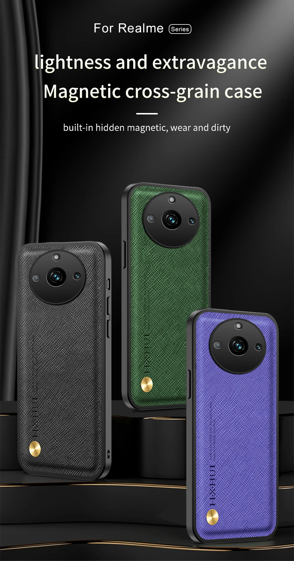 Comprar Funda magnética para coche, cubierta de cuero con textura de grano cruzado, a prueba de golpes, para Realme 11 Pro Plus 5G