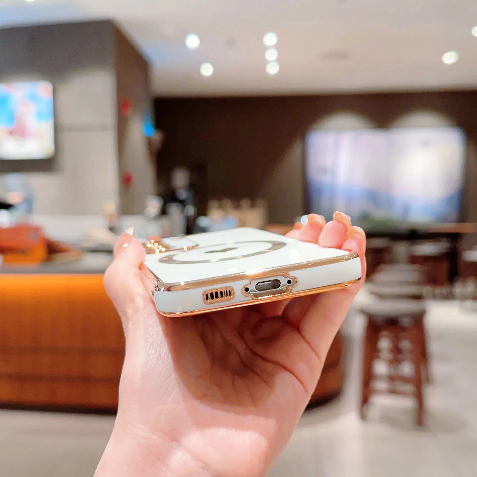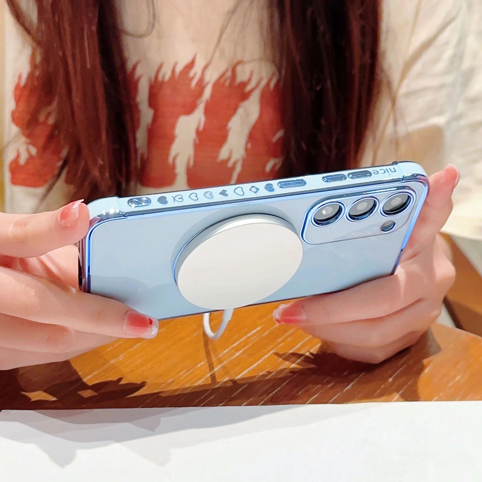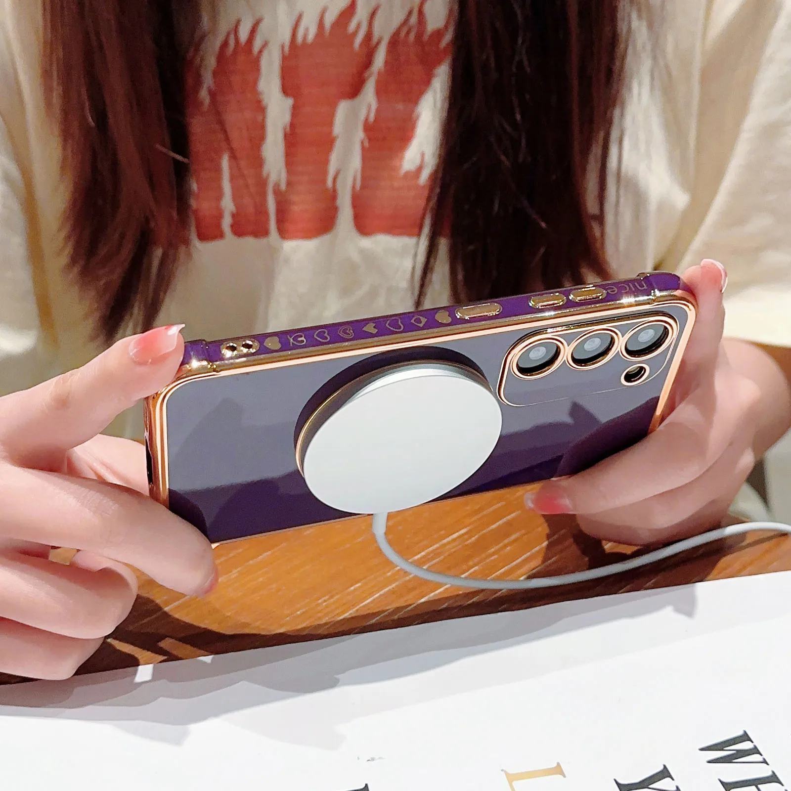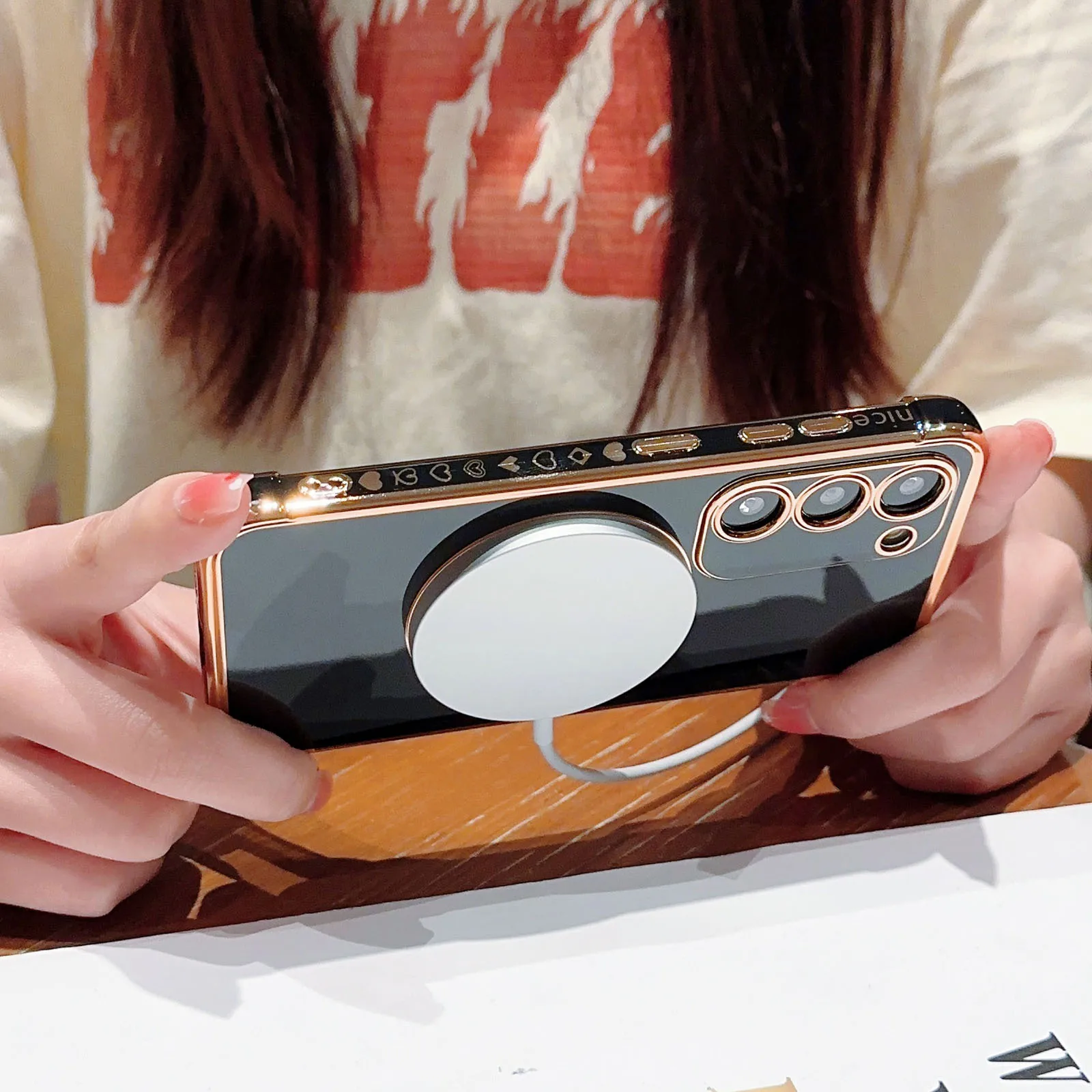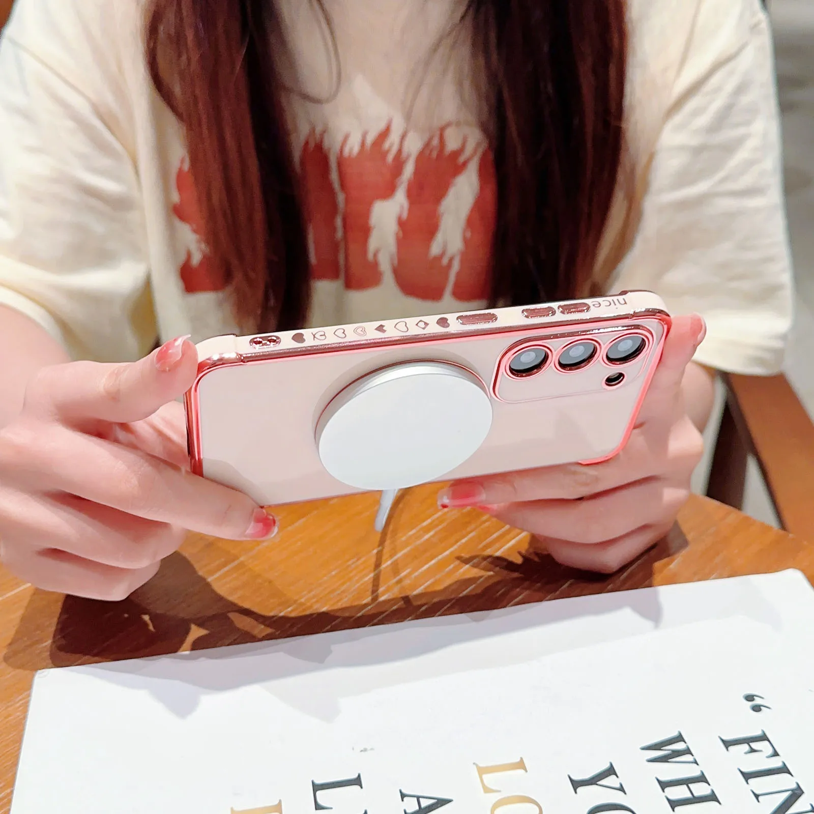 Comprar Funda magnética de corazón chapado para Samsung Galaxy S23 S22 S21 Ultra S21 S20 FE para Magsafe carga inalámbrica cubierta suave a prueba de golpes