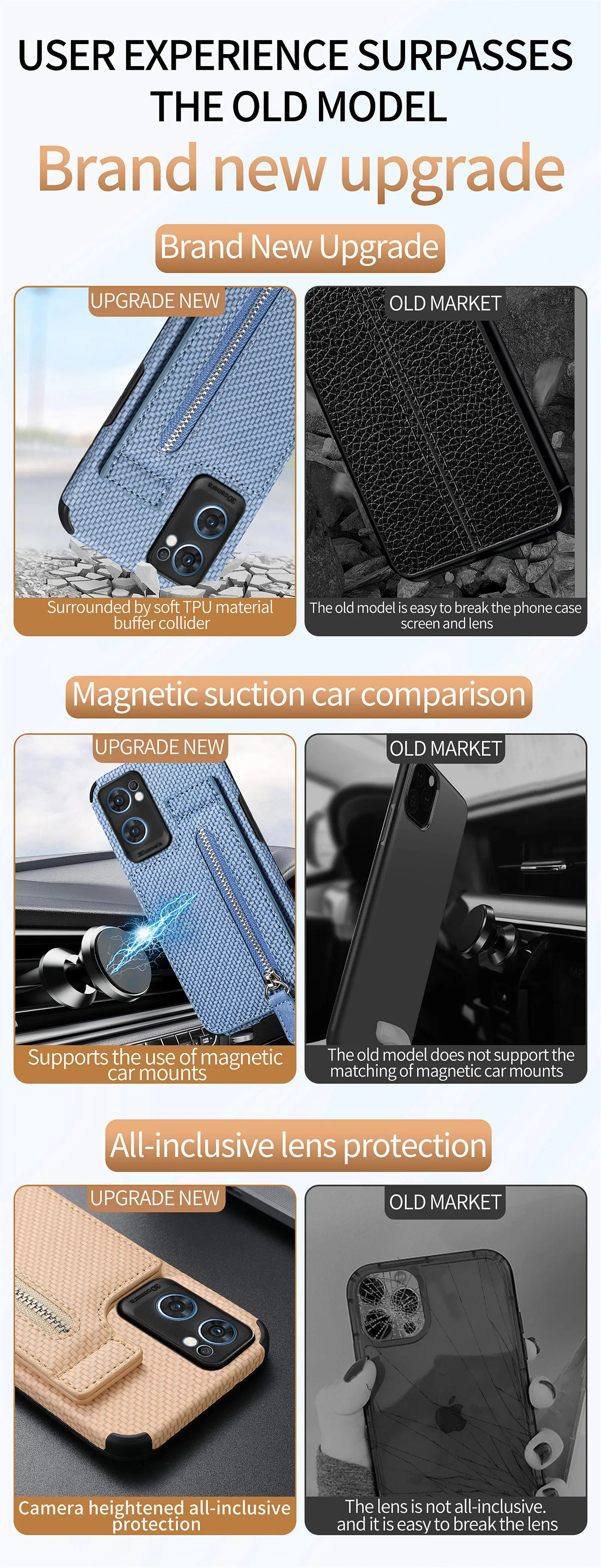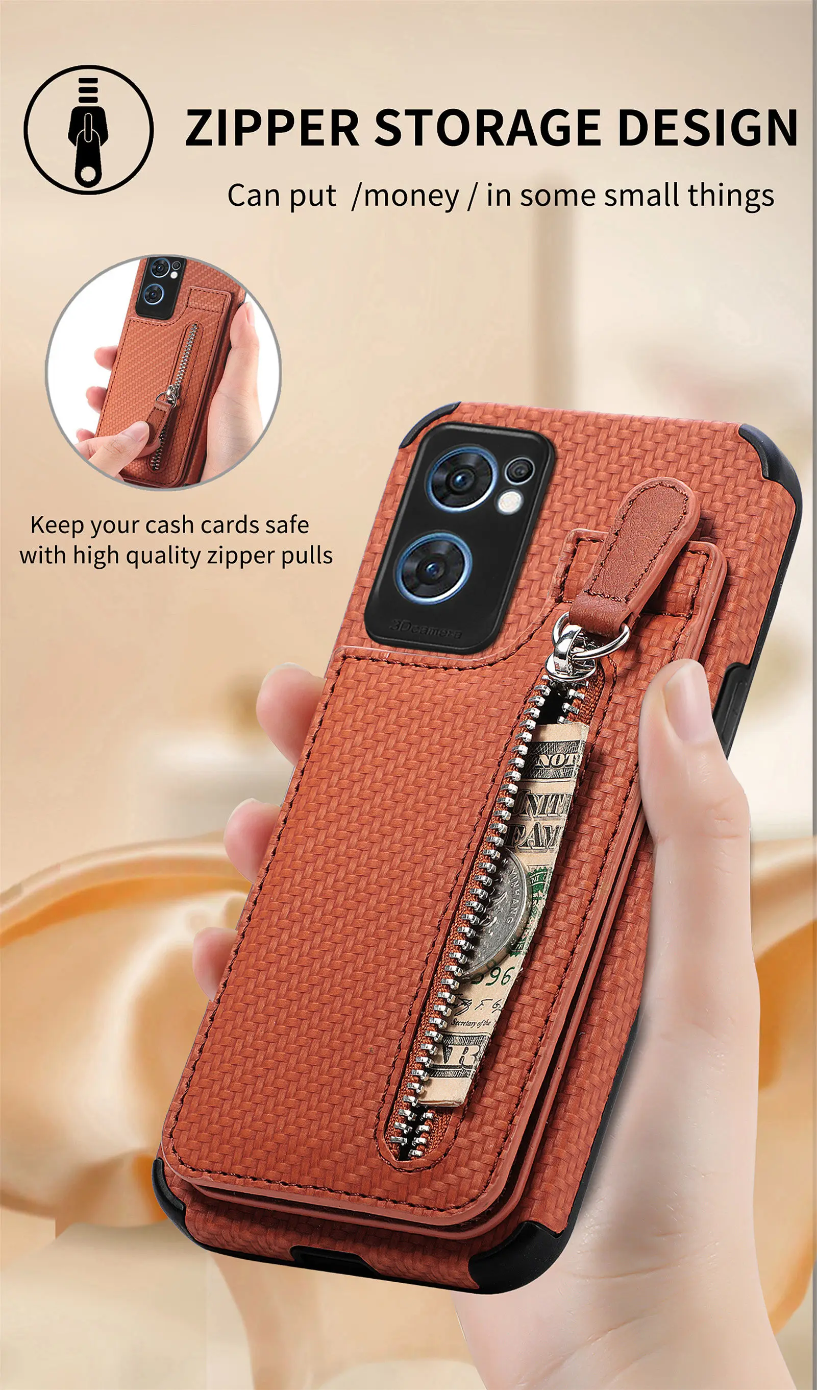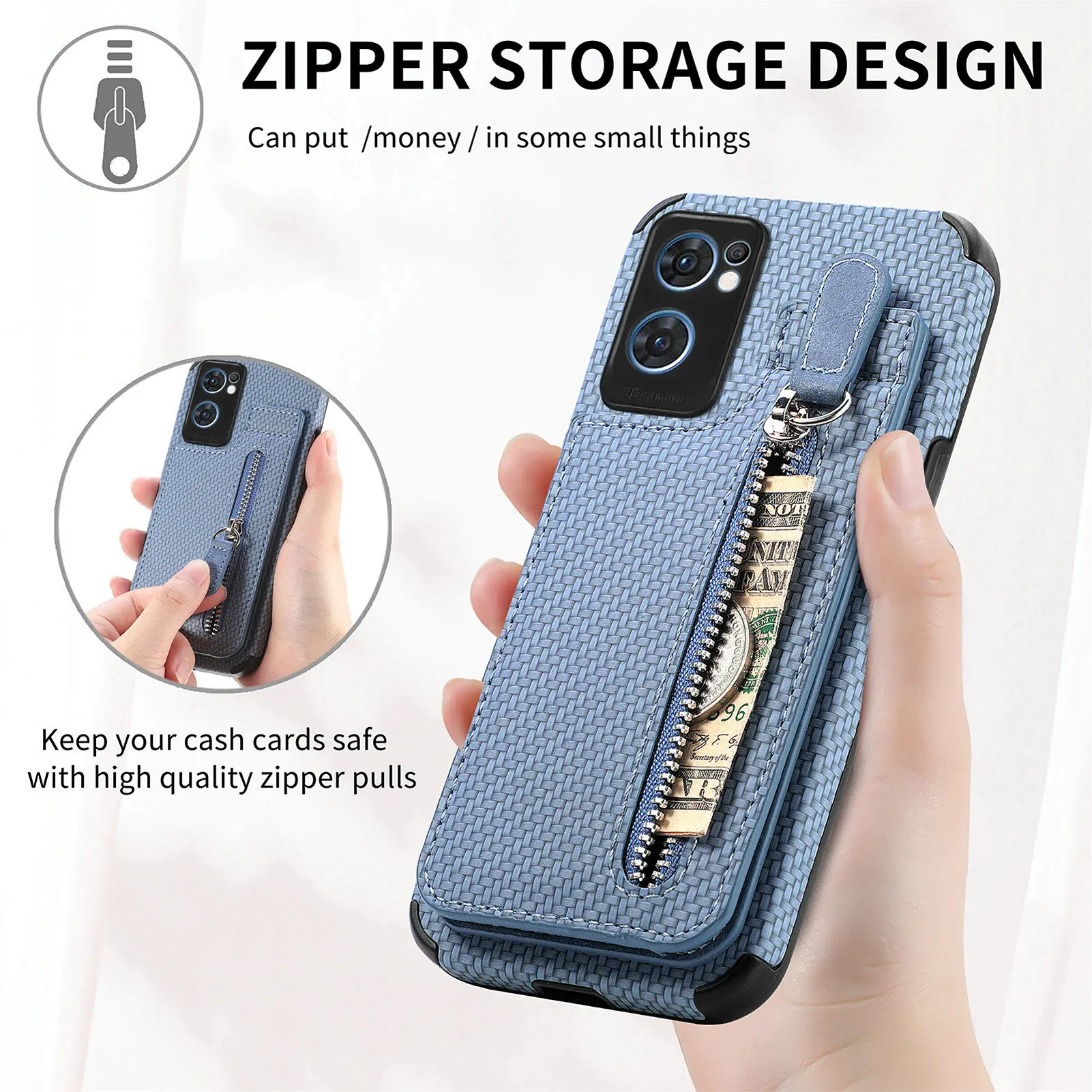 Comprar Funda magnética con cremallera para OPPO A38, A79, A58, A97, A78, A72, A74, A93, A94, A16, A57, A52, A54, funda trasera con ranura para tarjetas