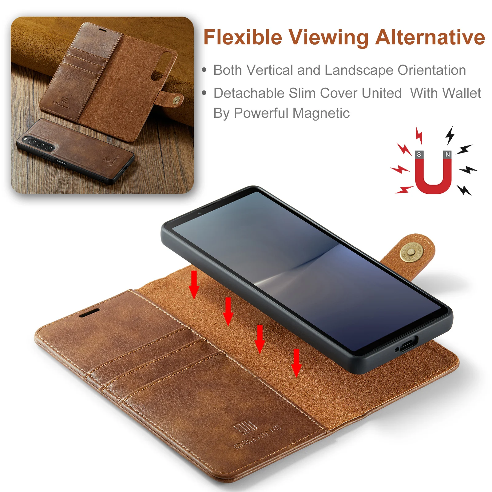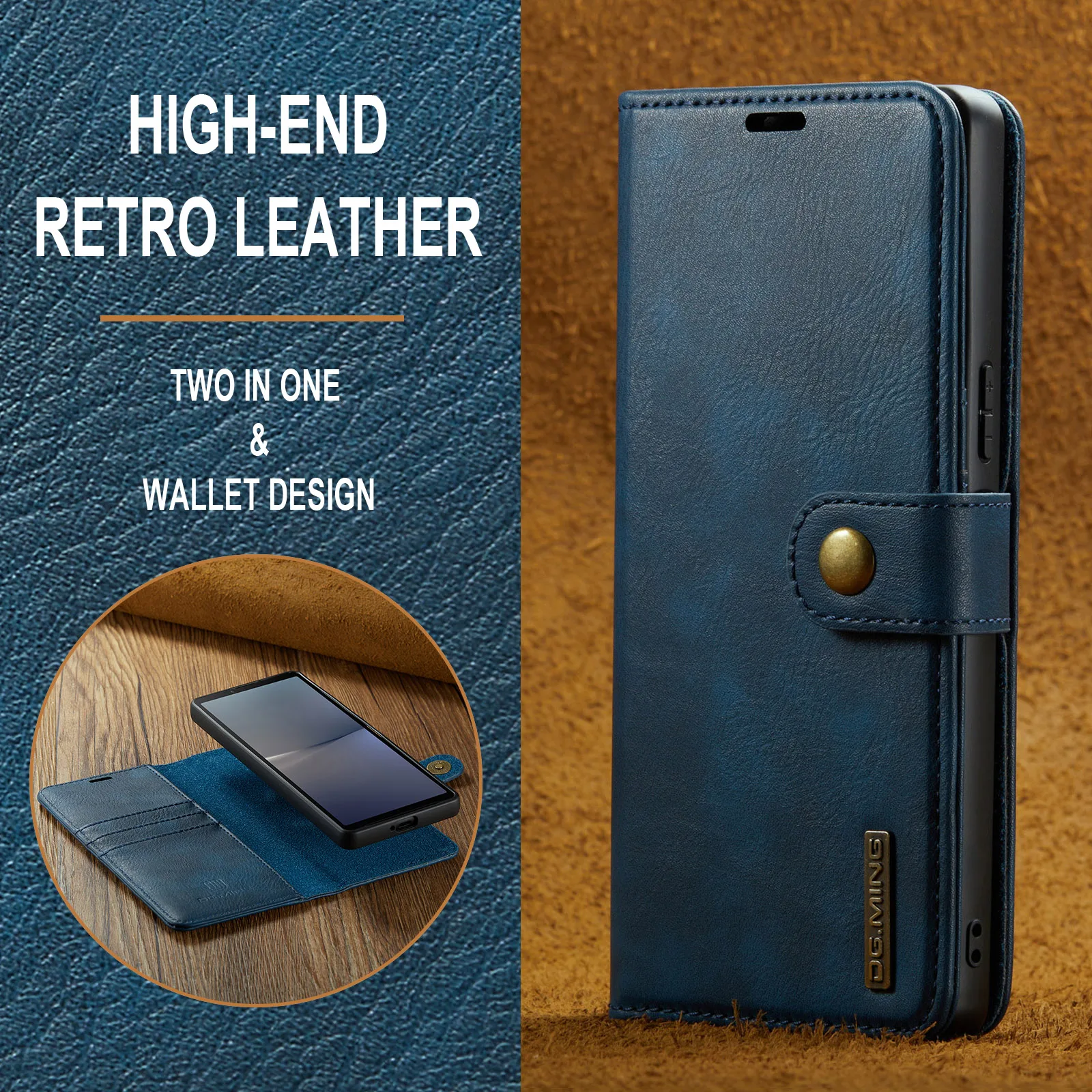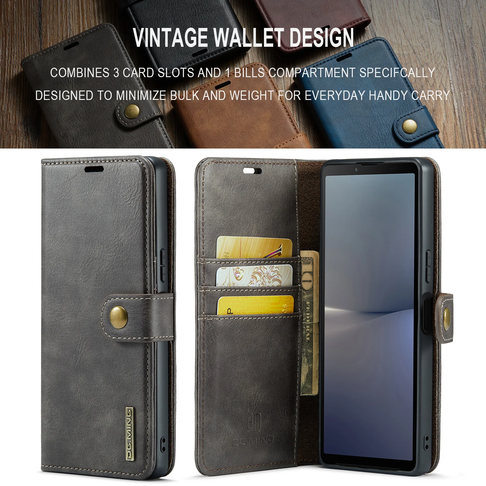 Funda tipo billetera desmontable 2 en 1 de cuero magnético para Sony Xperia 1V Xperia10V, monedero, bolsa de bolsillo, funda de negocios Retro