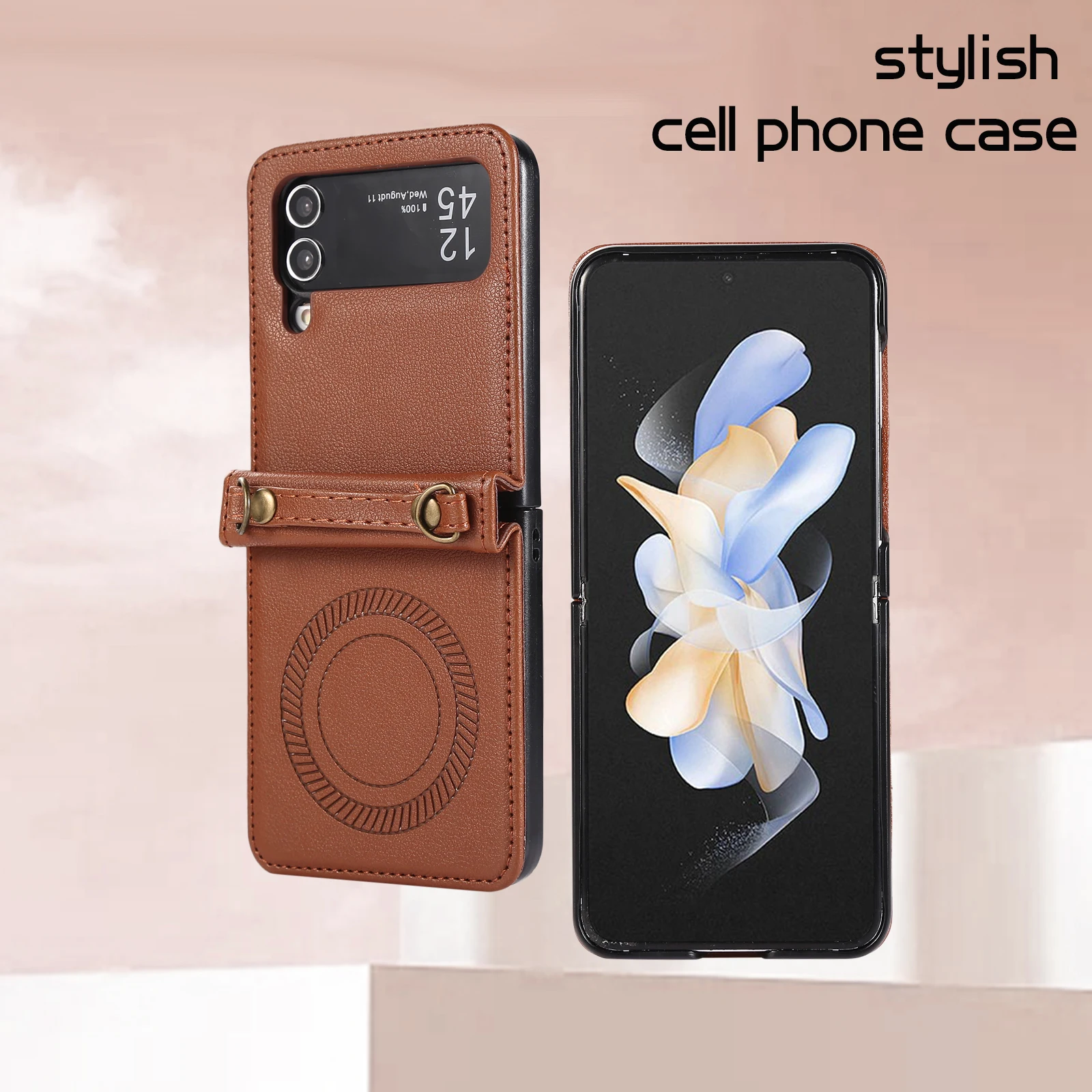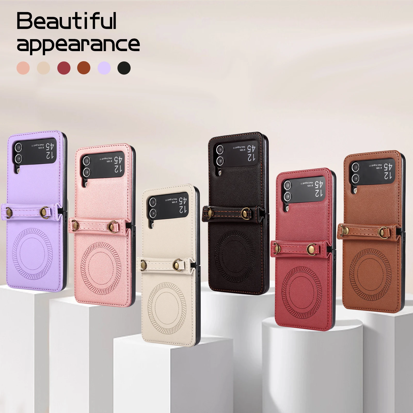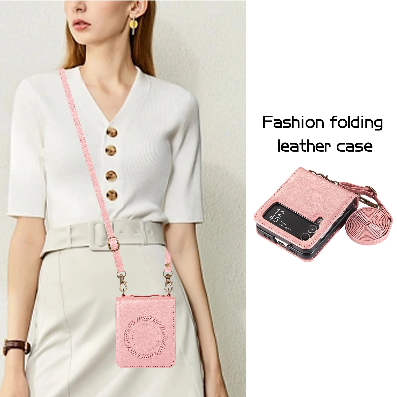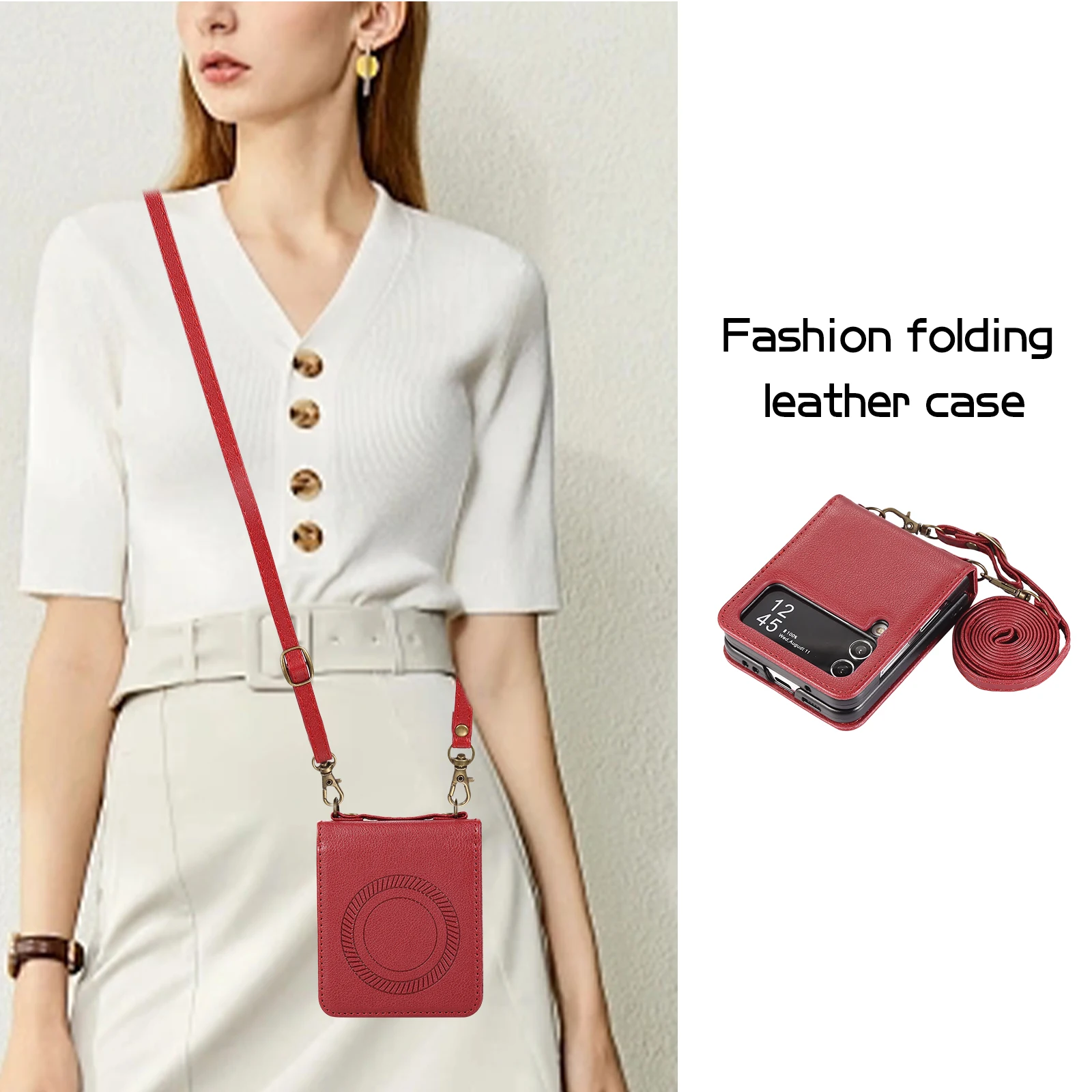 Funda de cuero magnética con carga inalámbrica cruzada para Samsung Galaxy Z Flip 5 4 3 Flip5 Flip4 Cordón de cuerda larga para funda Magsafe