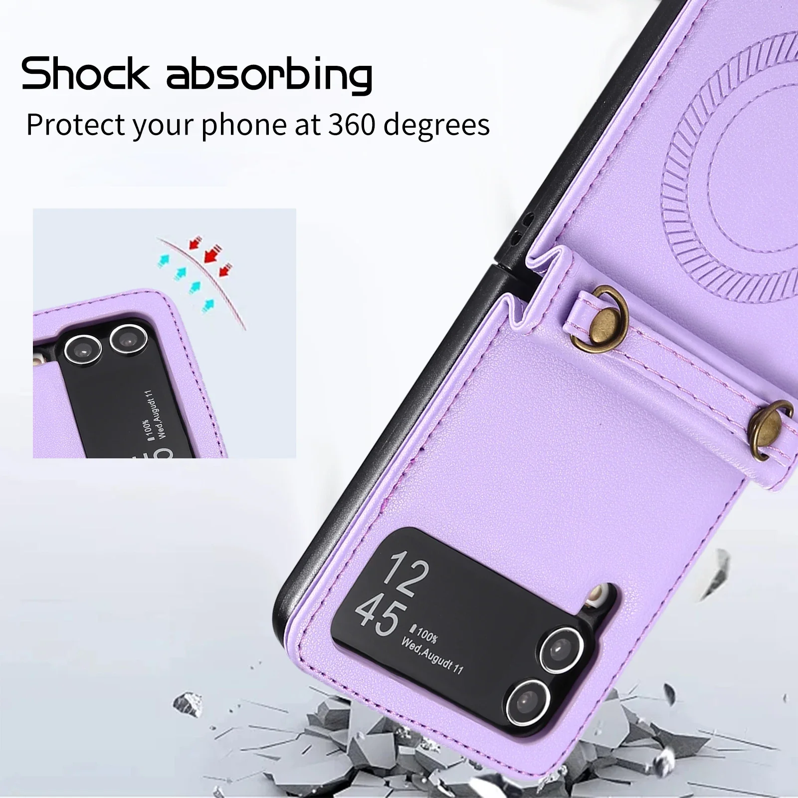 Comprar Funda magnética de cuero con carga inalámbrica cruzada para Samsung Galaxy Z Flip 5, 4, 3, Flip5, Flip4, cordón de cuerda larga para funda Magsafe