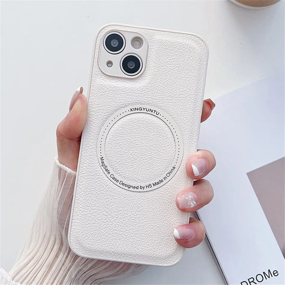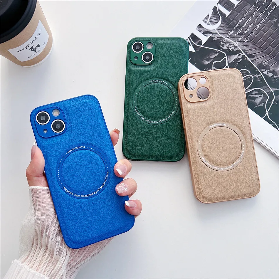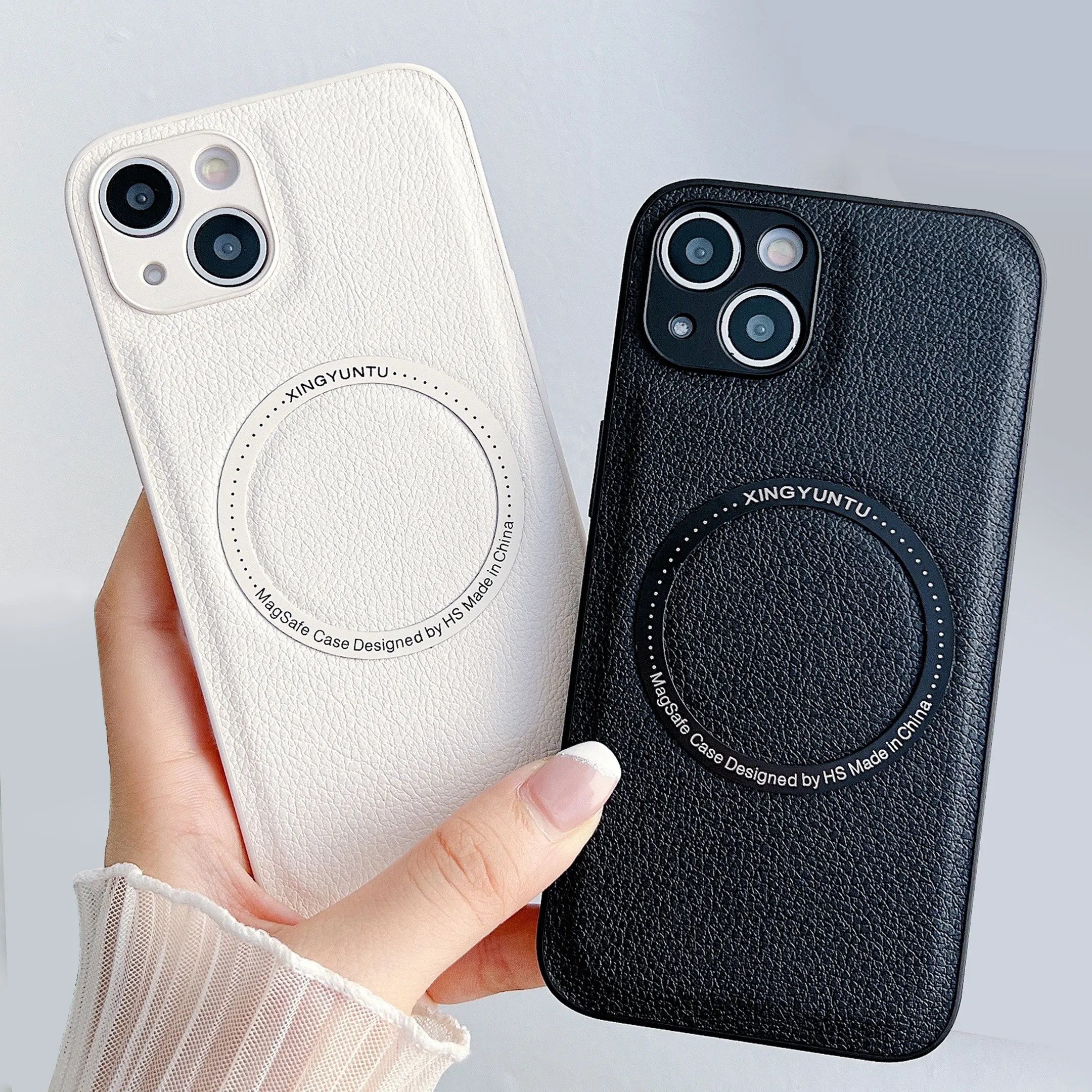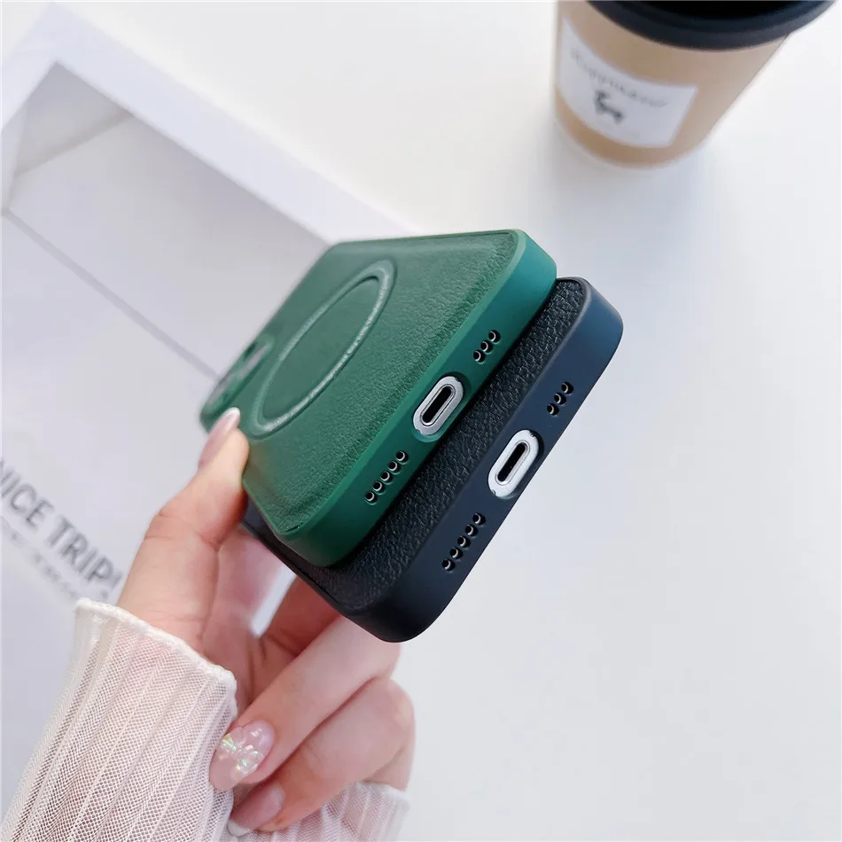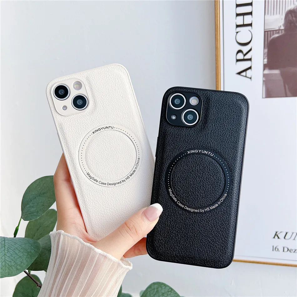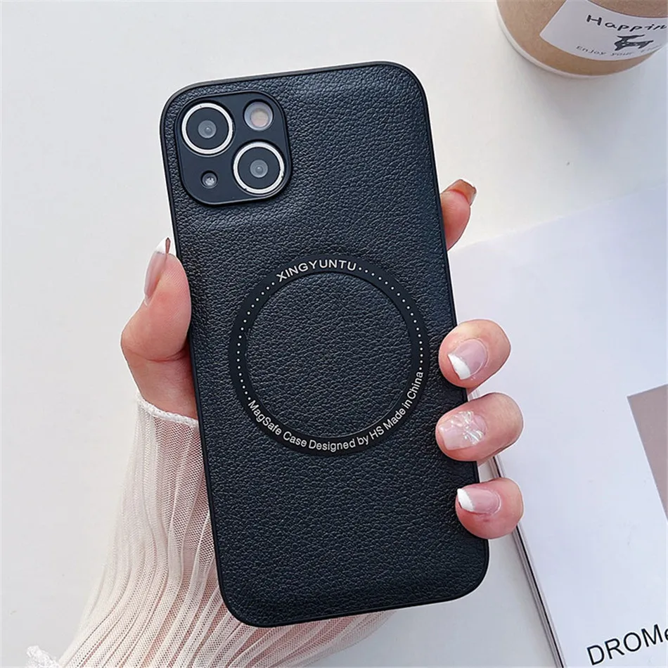 Funda de carga inalámbrica Magsafe magnética de cuero Litchi de lujo para iPhone 13 12 11 Pro Max protección de cámara a prueba de golpes