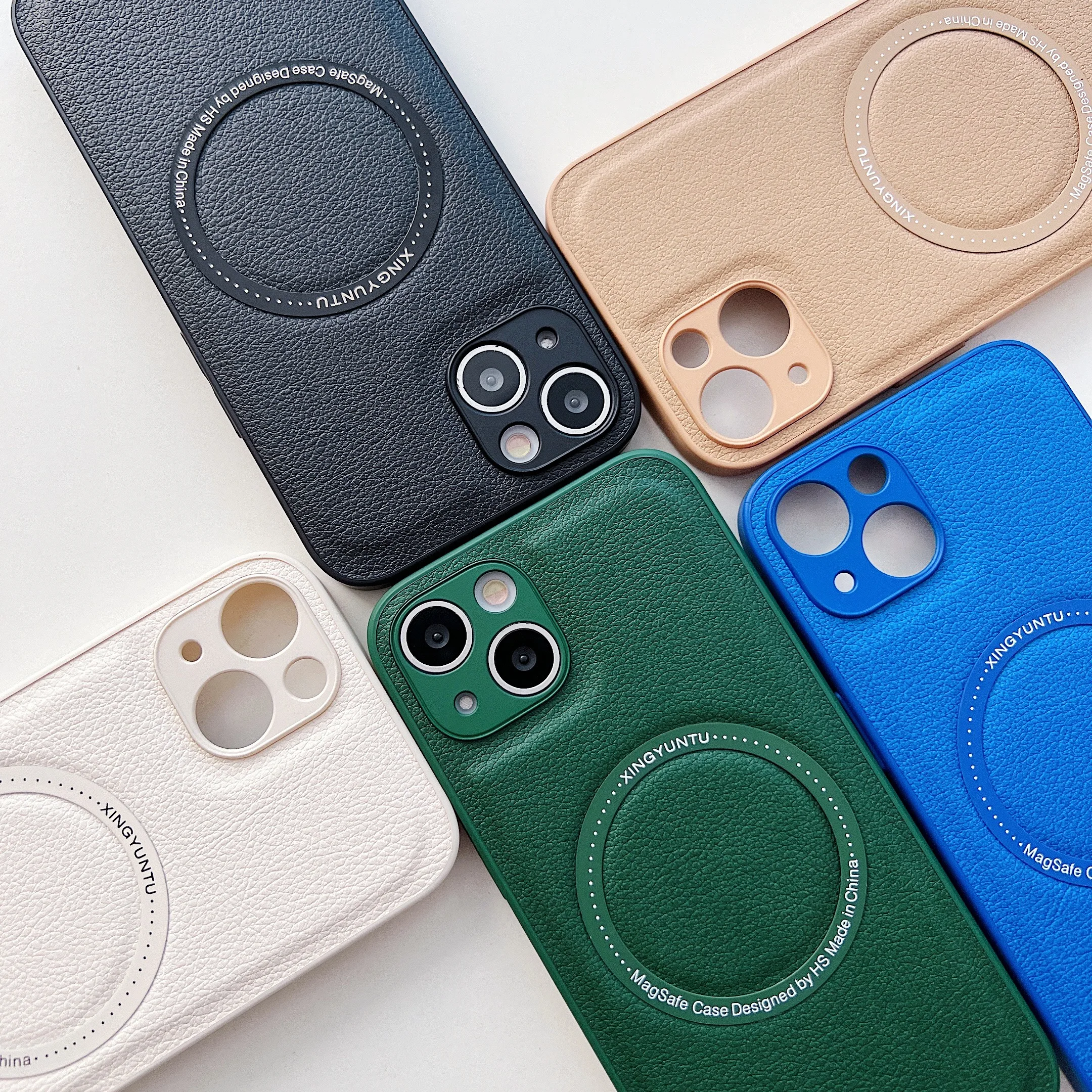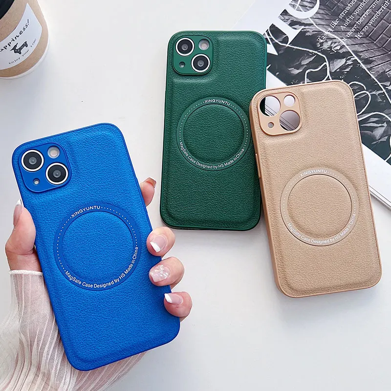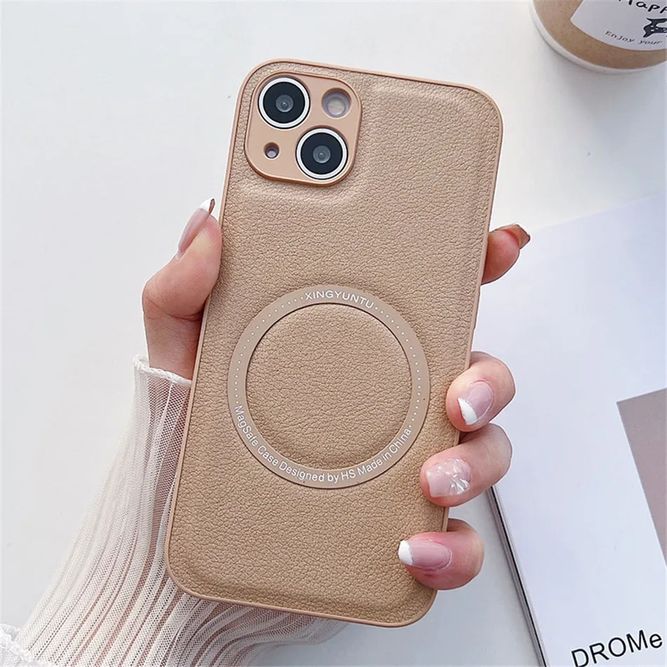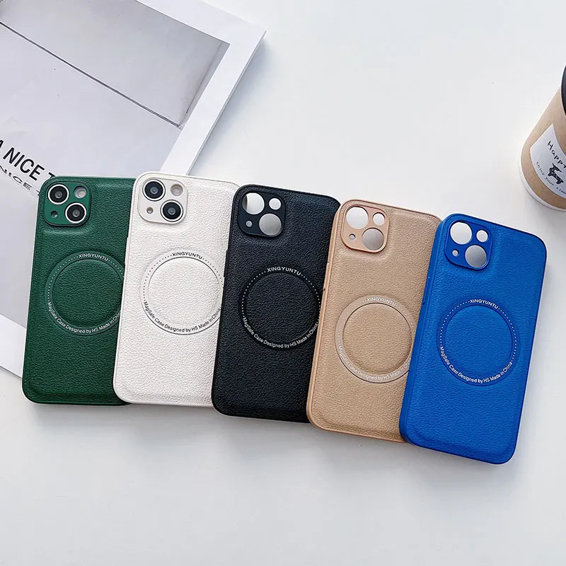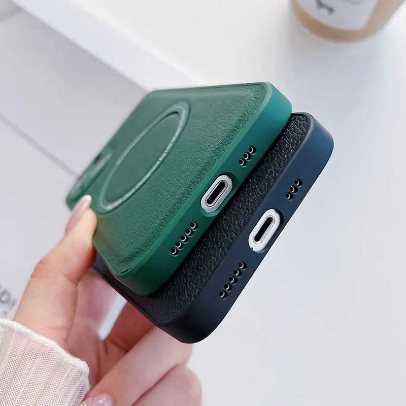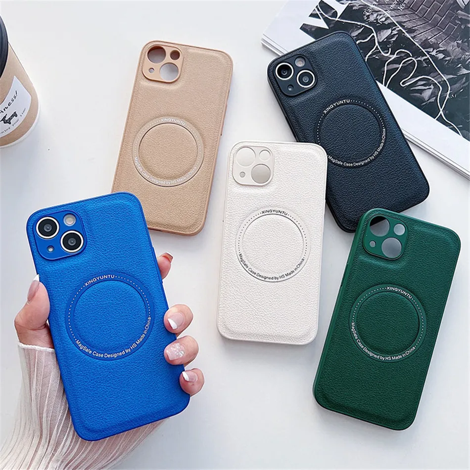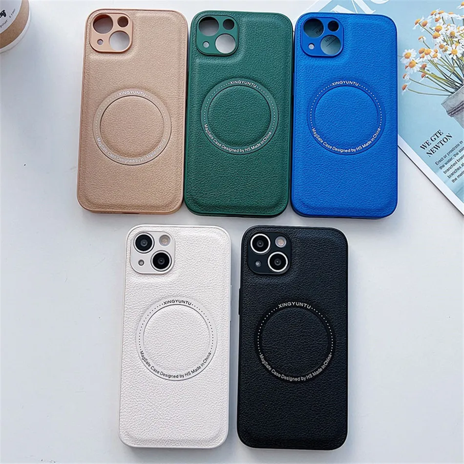 Funda de carga inalámbrica Magsafe magnética de cuero Litchi de lujo para iPhone 13 12 11 Pro Max protección de cámara a prueba de golpes