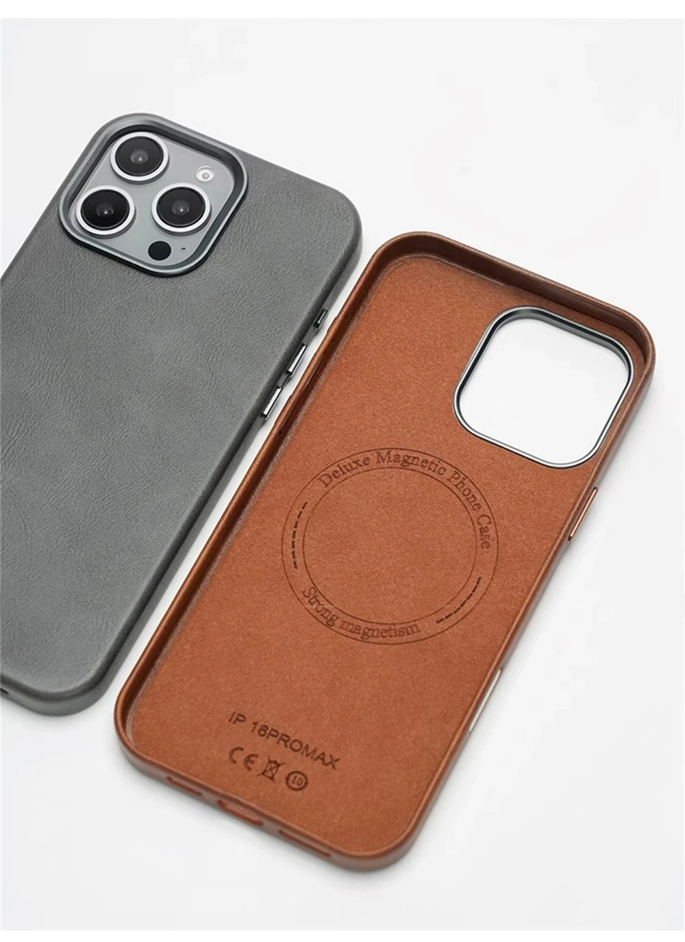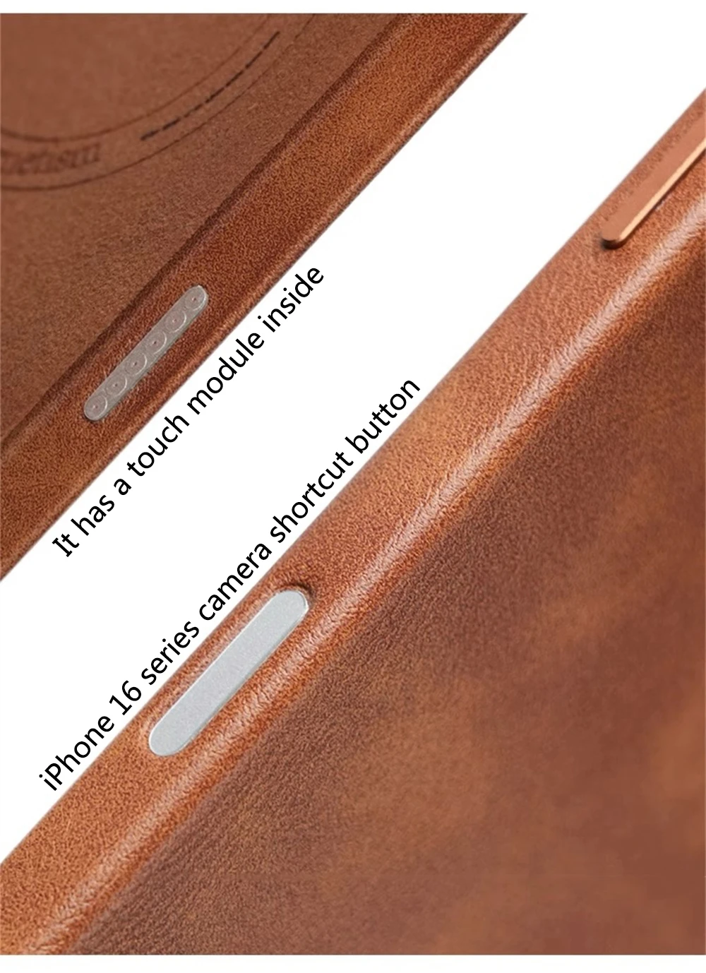 Funda magnética de cuero PU de negocios Retro para iPhone 17 16 Pro Max Plus 15 14 13 para cubierta de botón de cámara de carga inalámbrica Magsafe